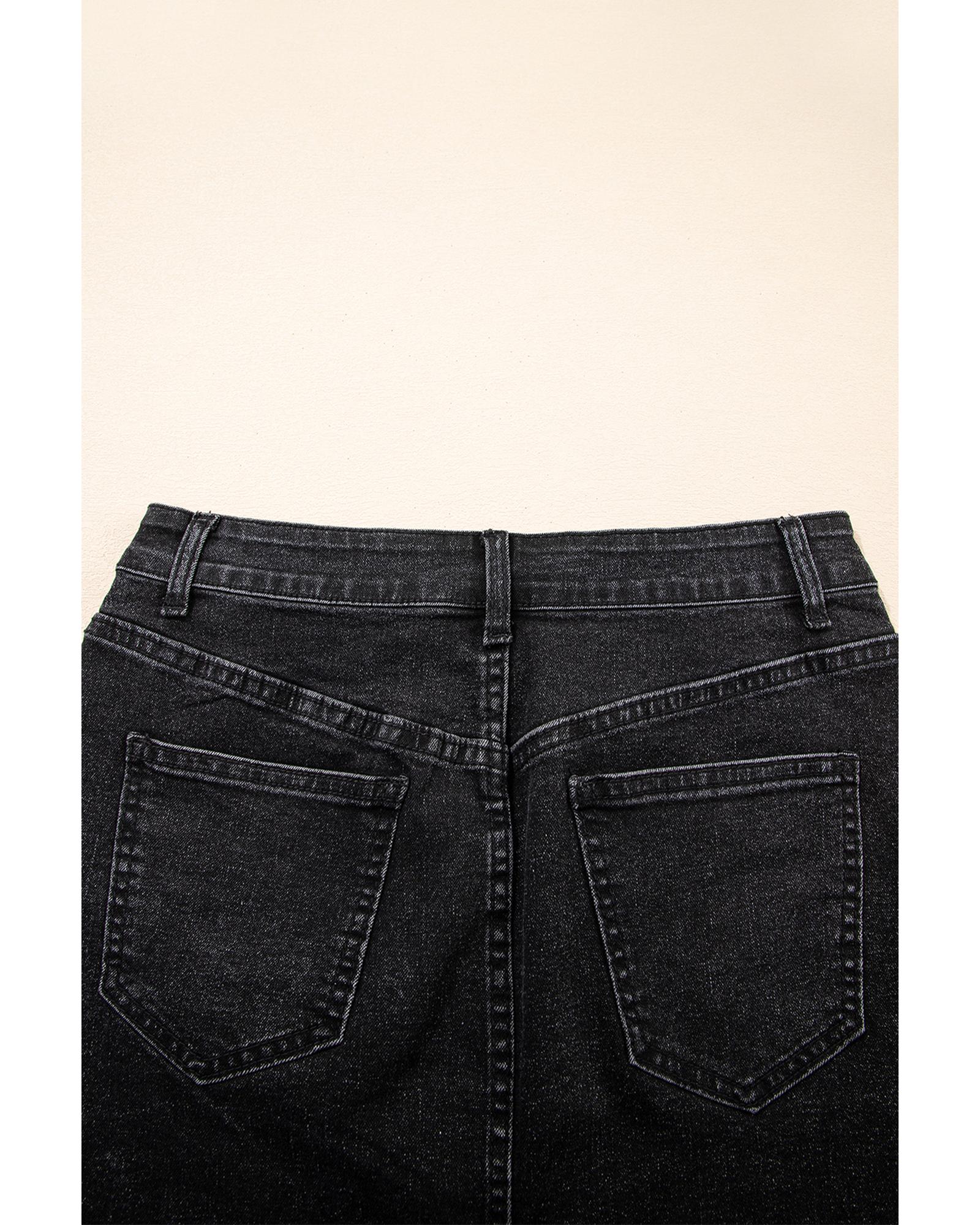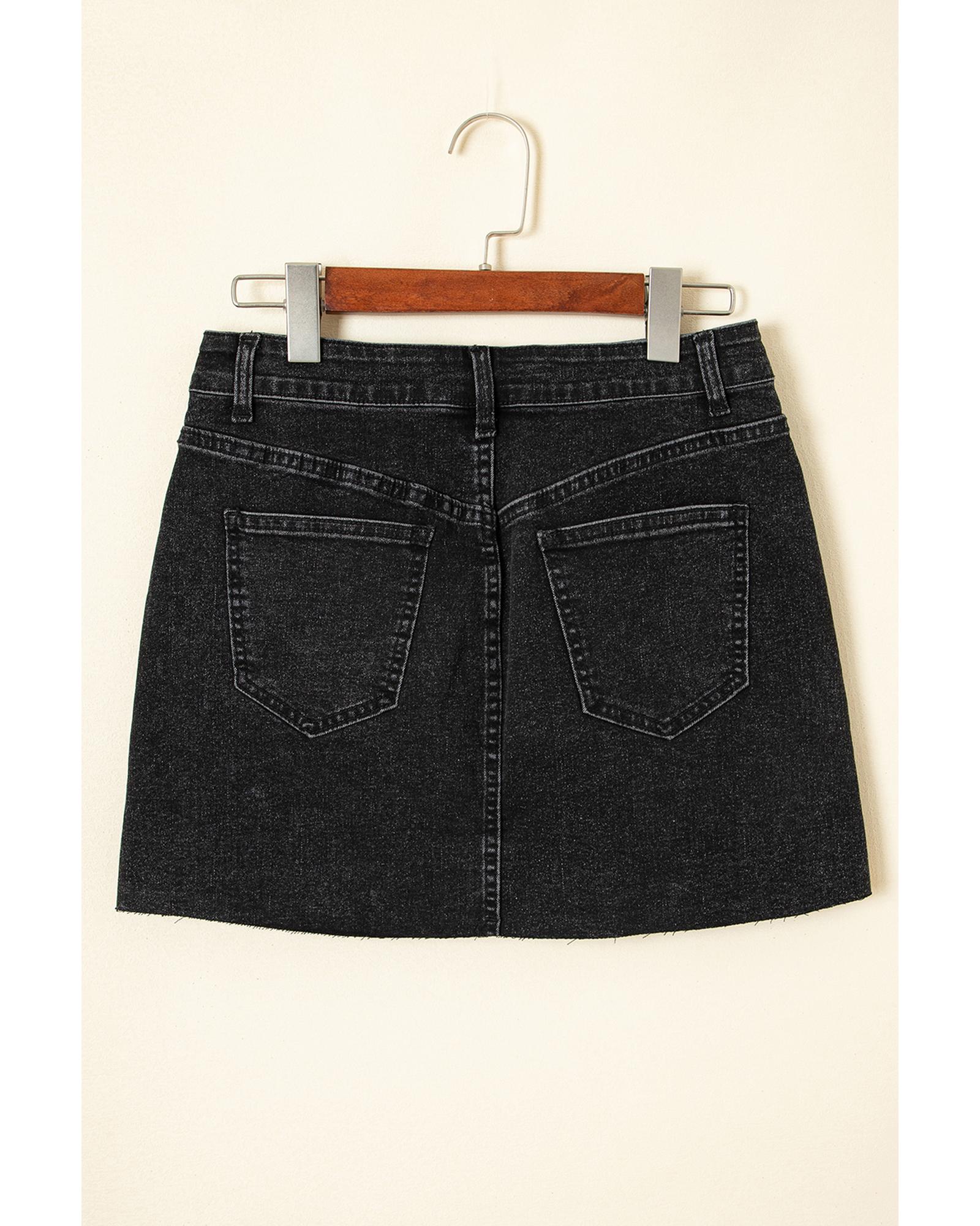 Carbon Grey Mineral Wash Ripped Raw Hem Denim Mini Skirt – 16 US