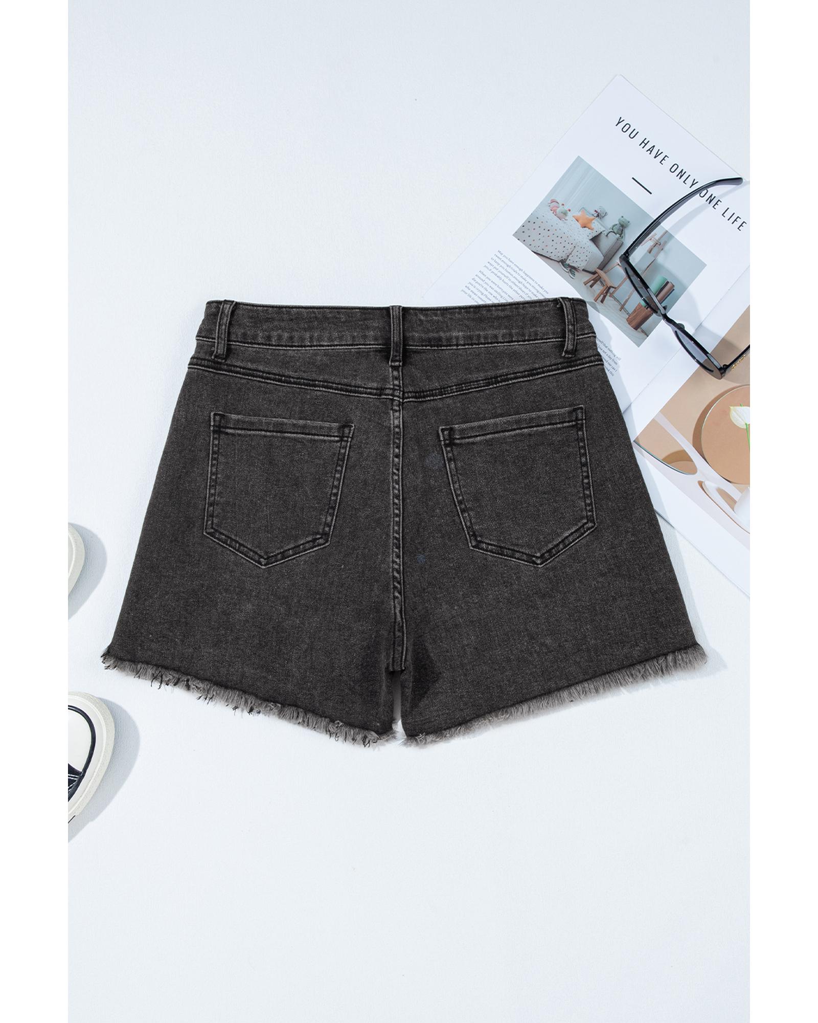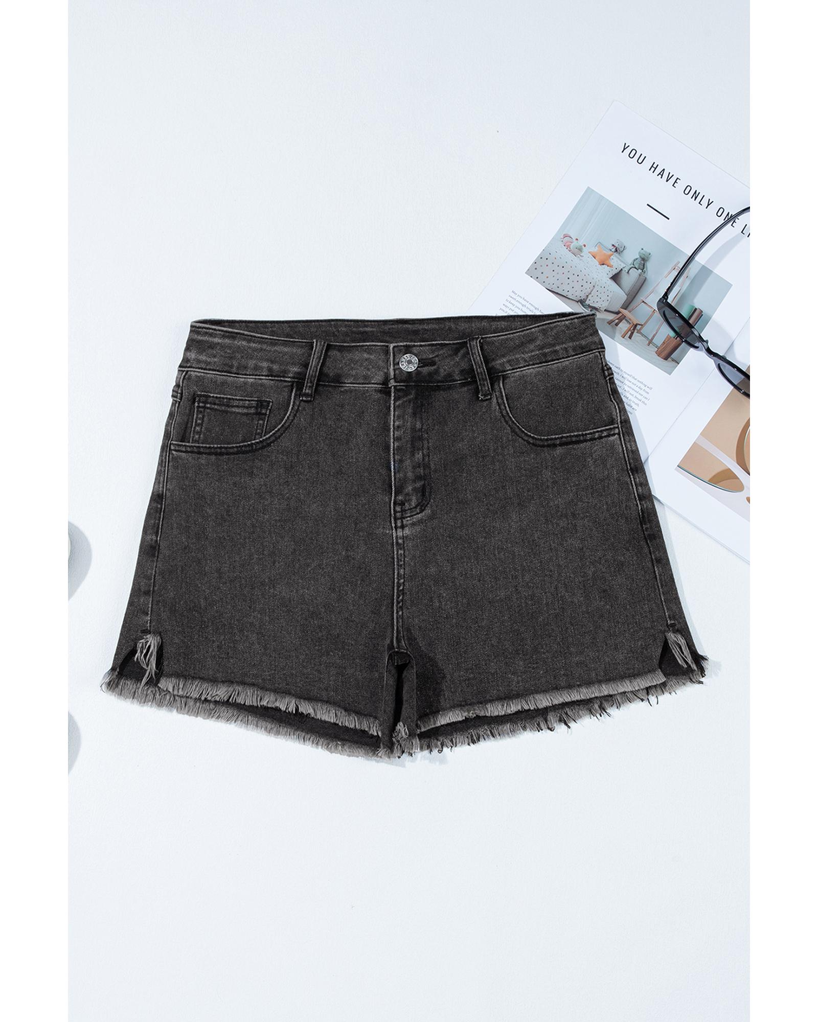 Carbon Grey Raw Hem High Waist Denim Shorts – 6 US