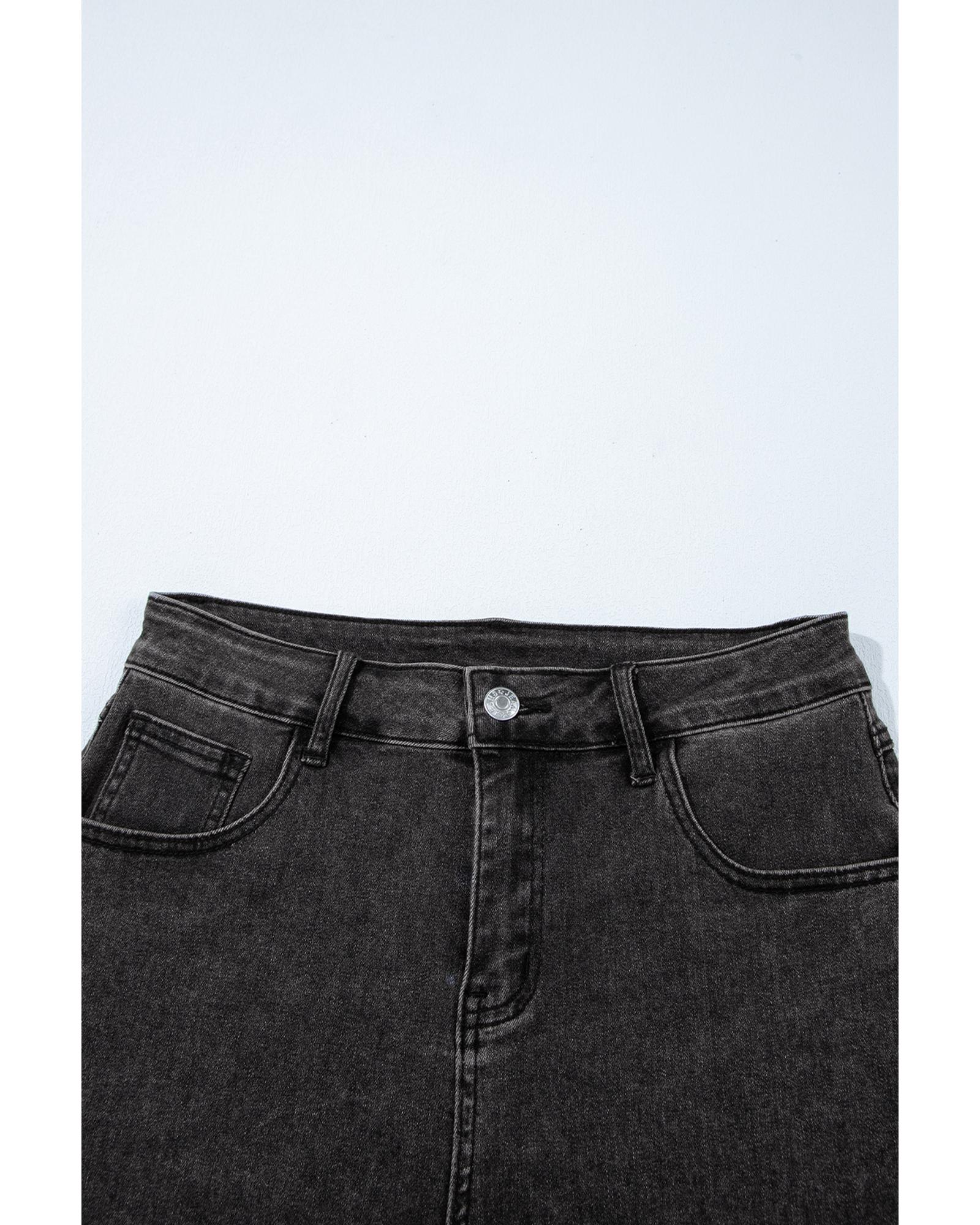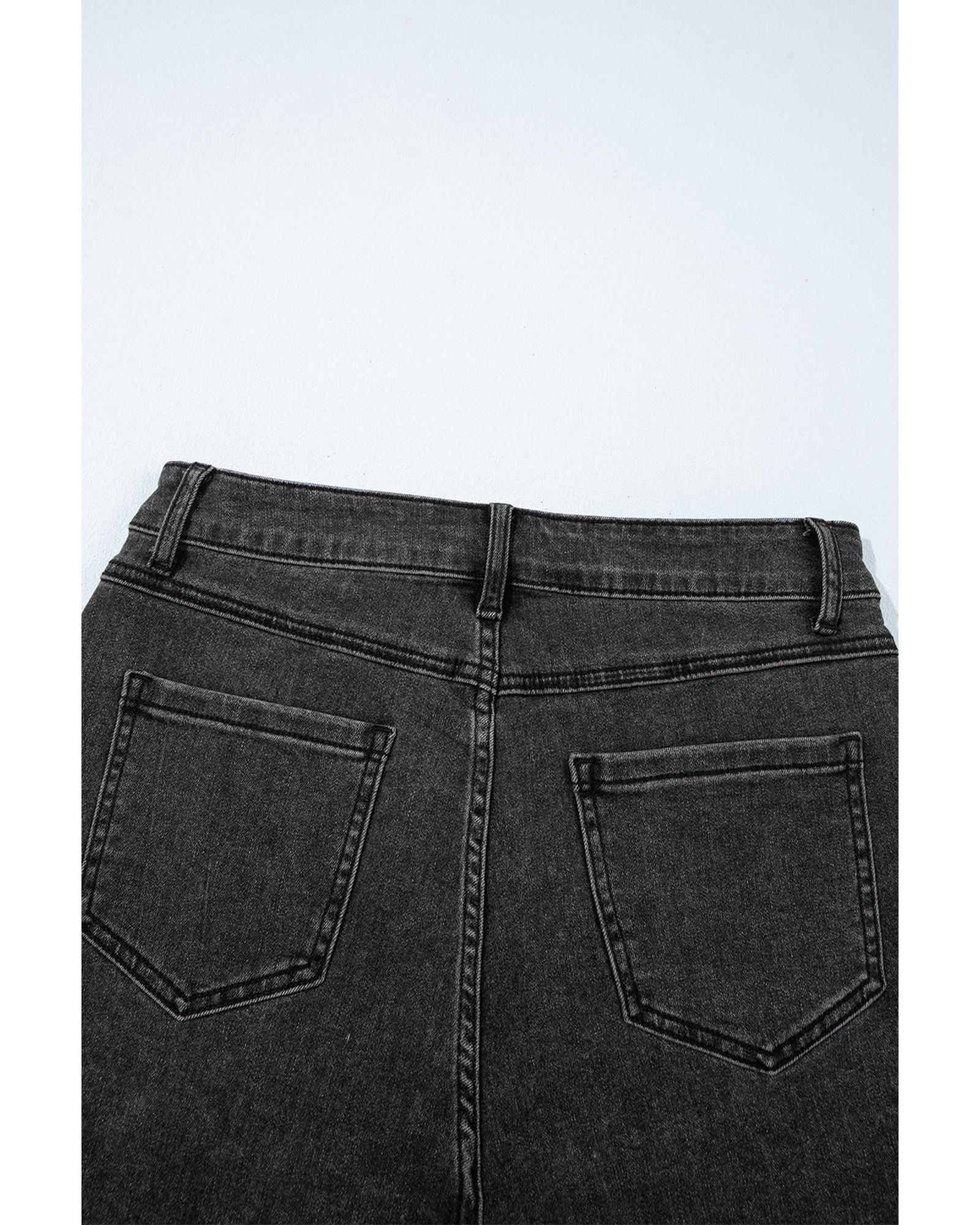 Black Side Pockets Frilled Smocked High Waist Wide Leg Jeans - M