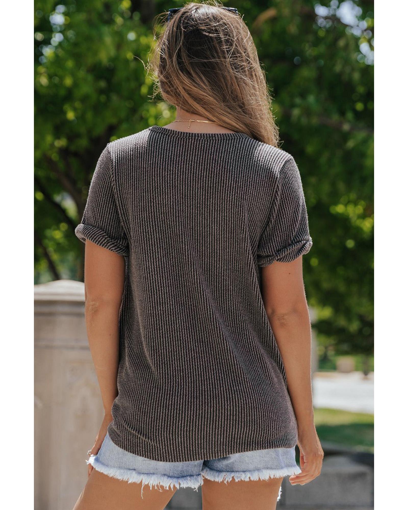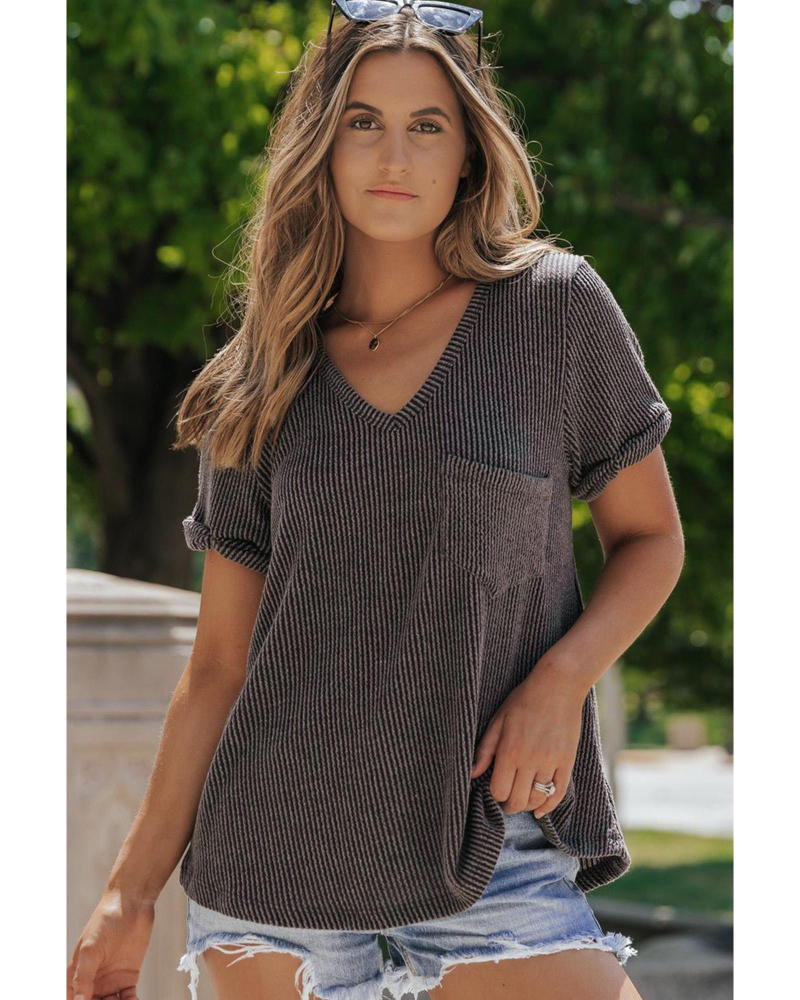 Carbon Grey Twist Short Sleeve Corded V Neck Top – M