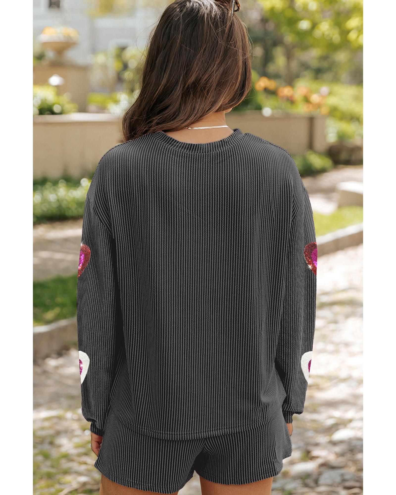 Carbon Grey Valentine Sequin Heart Corded Pullover and Shorts Set – L