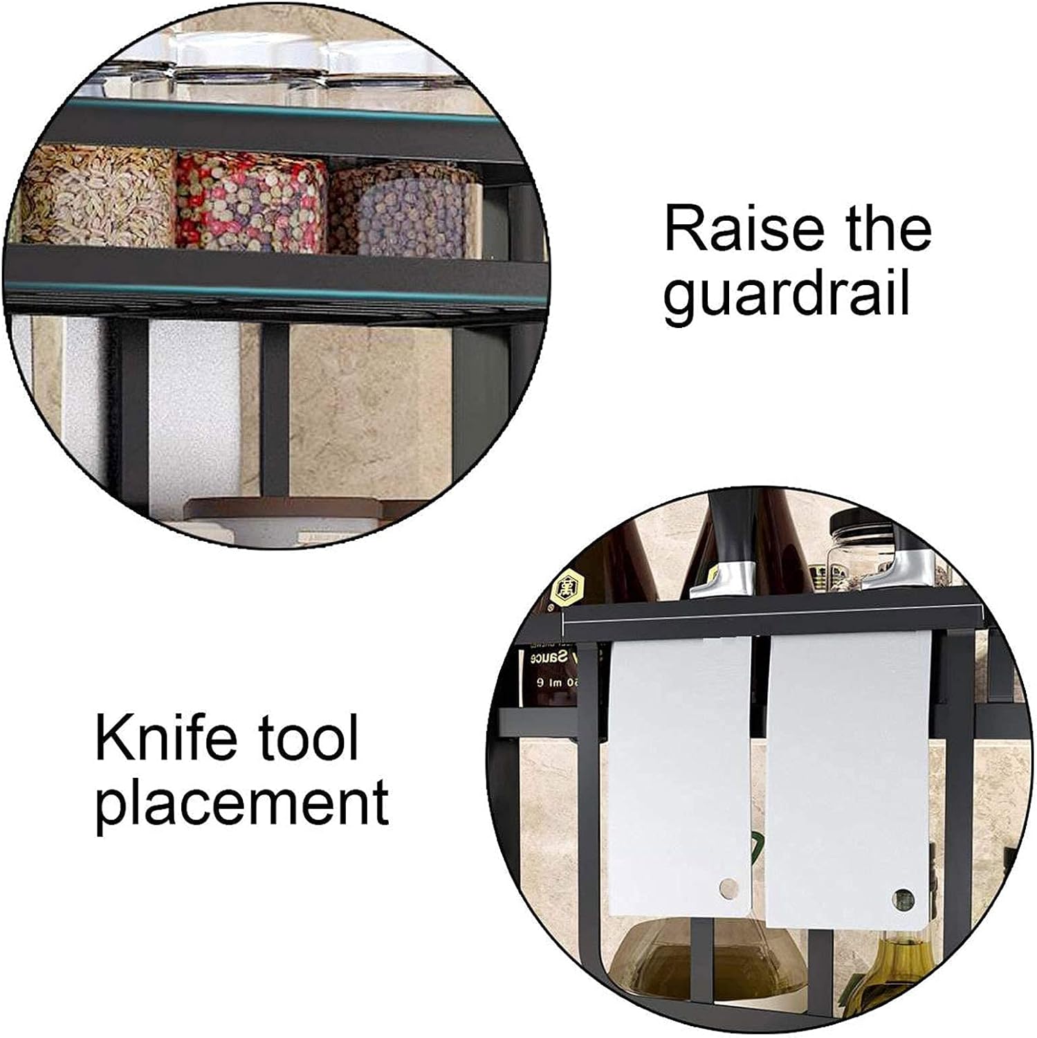 - STURDY METAL CONSTRUCTION: Built with premium steel and a sleek black finish, this rack is rust-resistant, water-resistant, and durable enough to support heavy items like glass bottles and cooking oils with ease.
