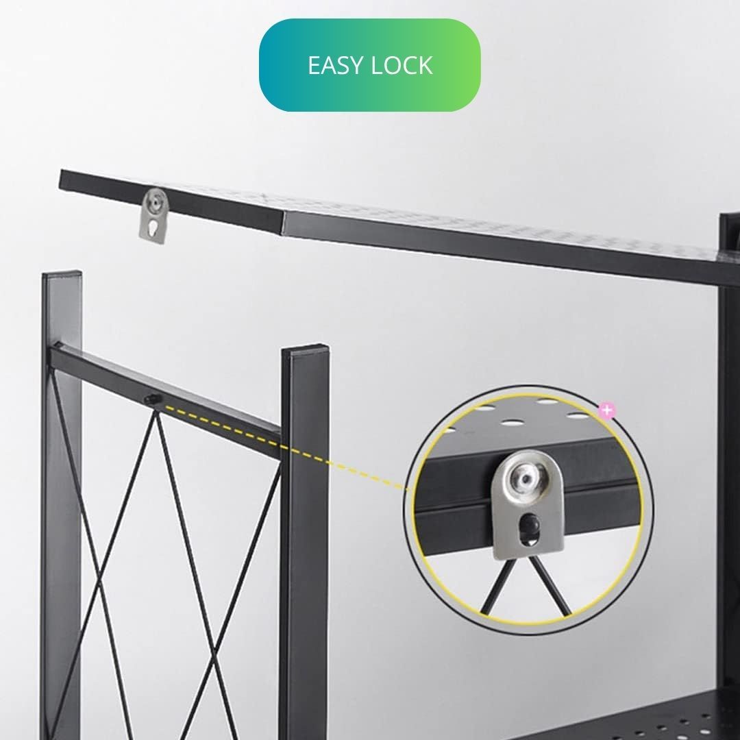• HEAVY-DUTY & DURABLE STRUCTURE: Built with reinforced metal and a cross-frame support design, this shelving unit offers strong load-bearing capacity—supporting up to 100 kg with wheels and 200 kg without. Anti-rust coating ensures long-lasting use.