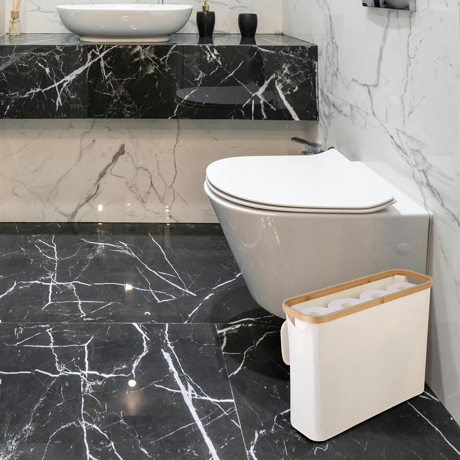 • LARGE STORAGE CAPACITY: This slim basket holds up to 12 regular toilet paper rolls or 9 jumbo rolls, helping you stay fully stocked and organized. A perfect fit for small bathrooms, closets, RVs, or under-sink spaces.