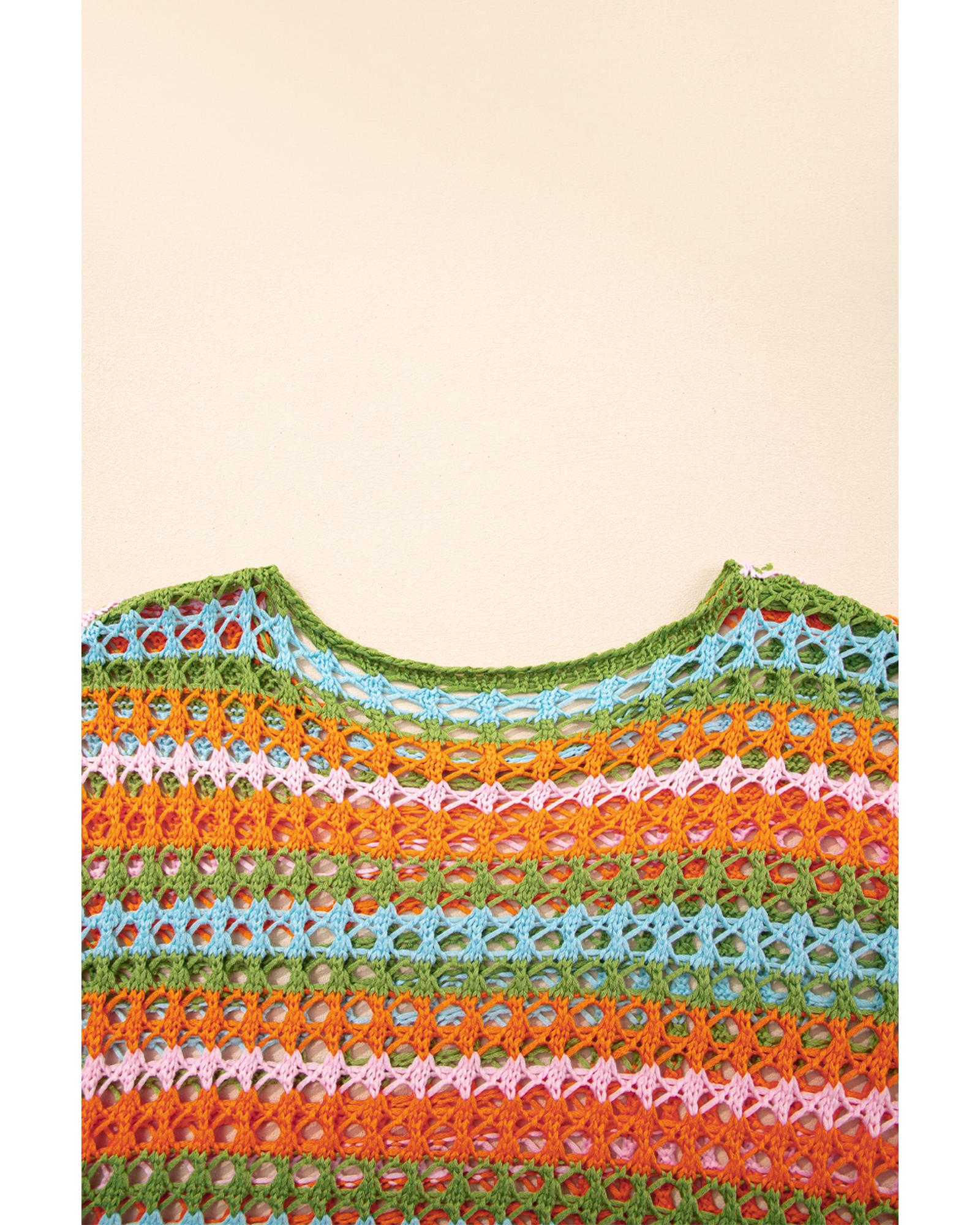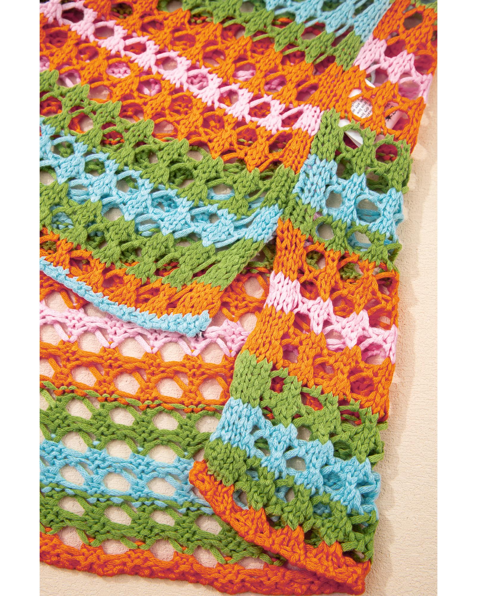 Carrot Multi Stripe Open Knit Sweater Beach Cover Up – S
