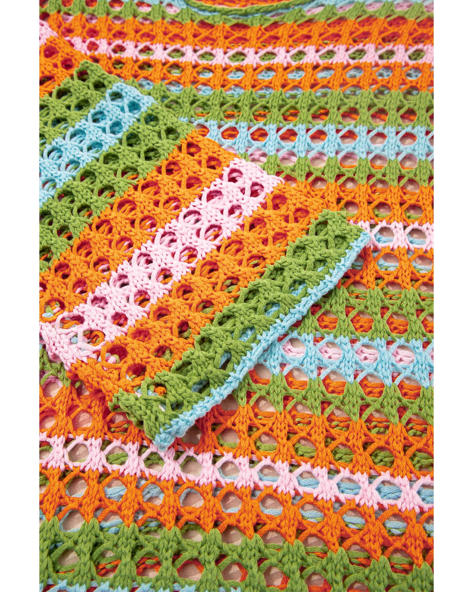 Carrot Multi Stripe Open Knit Sweater Beach Cover Up – XL