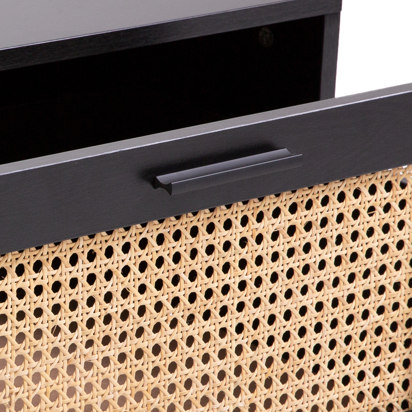 - Practical storage space with 2 shelves and large draw with natural rattan front