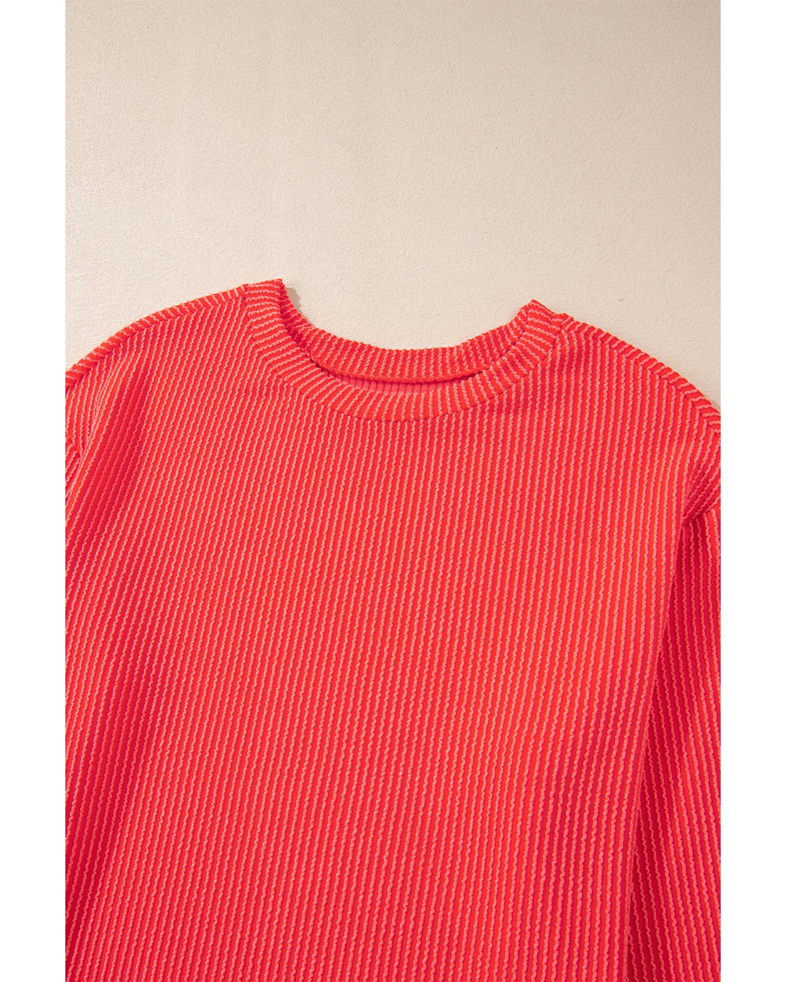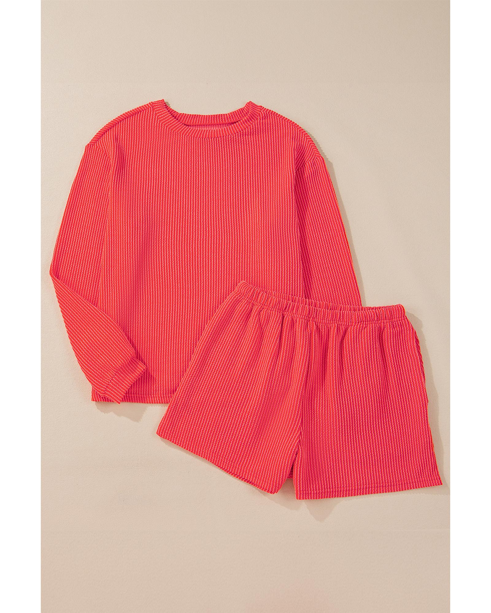 - Casual Corded Knit Long Sleeve Top and High Waist Shorts Set