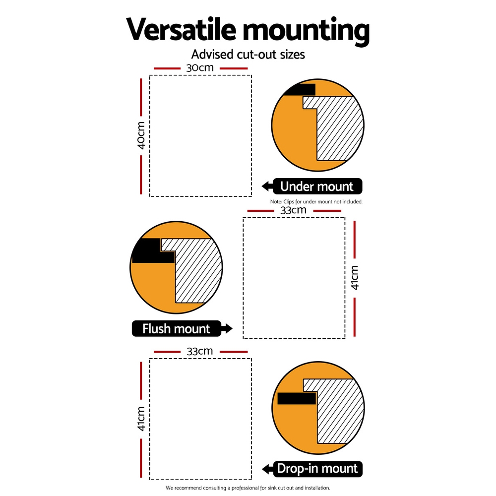 The Cefito Stainless Steel Sink is built to exacting standards so that you get the very best of quality materials and craftsmanship. It is crafted from heavy-duty food-grade 201 stainless steel. The surface is nano-coated to be anti-scratch, anti-oil and more importantly, bacteria-free. The sink also features an X-flume design for easy drainage, eco-friendly anti-condensation paint, sound-deadening pads and R10 rounded corners for safety and easy cleaning. Suitable for drop-in, flush-mount or under-mount installation, our stainless steel sink should have a definitive place in your uncompromising kitchen.