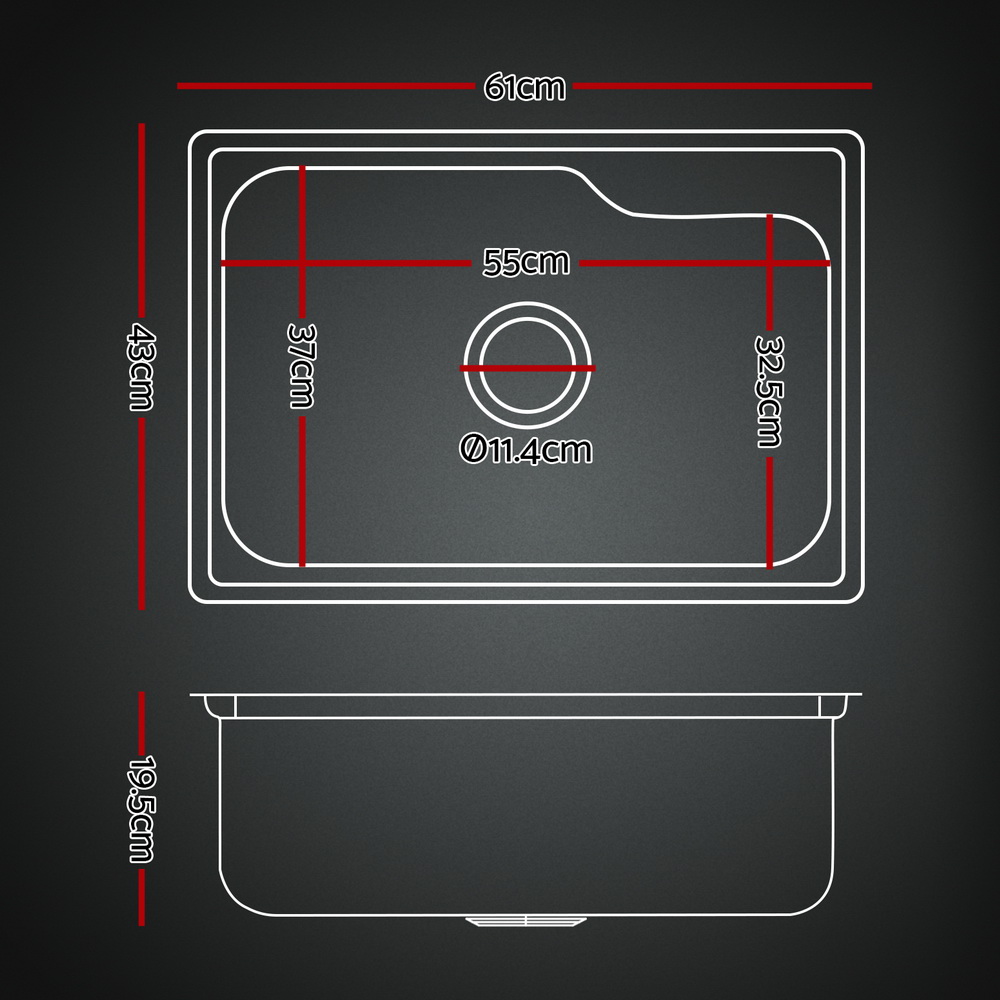 Cefito Kitchen Sink 61X43CM Stainless Steel Basin Single Bowl Black Drain Basket