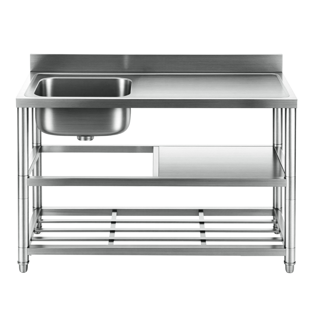 Cefito Stainless Steel Kitchen Bench Work Table with Sink Splashback 120cm