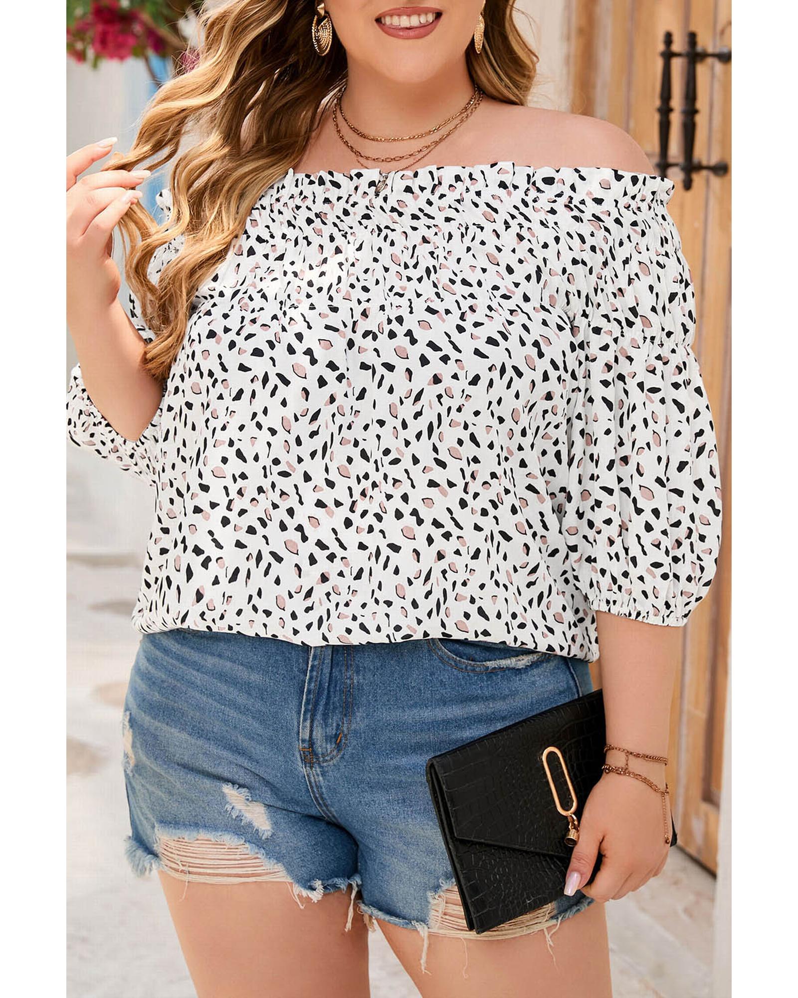 Cheetah Spotted Plus Size Off Shoulder Blouse – 1X