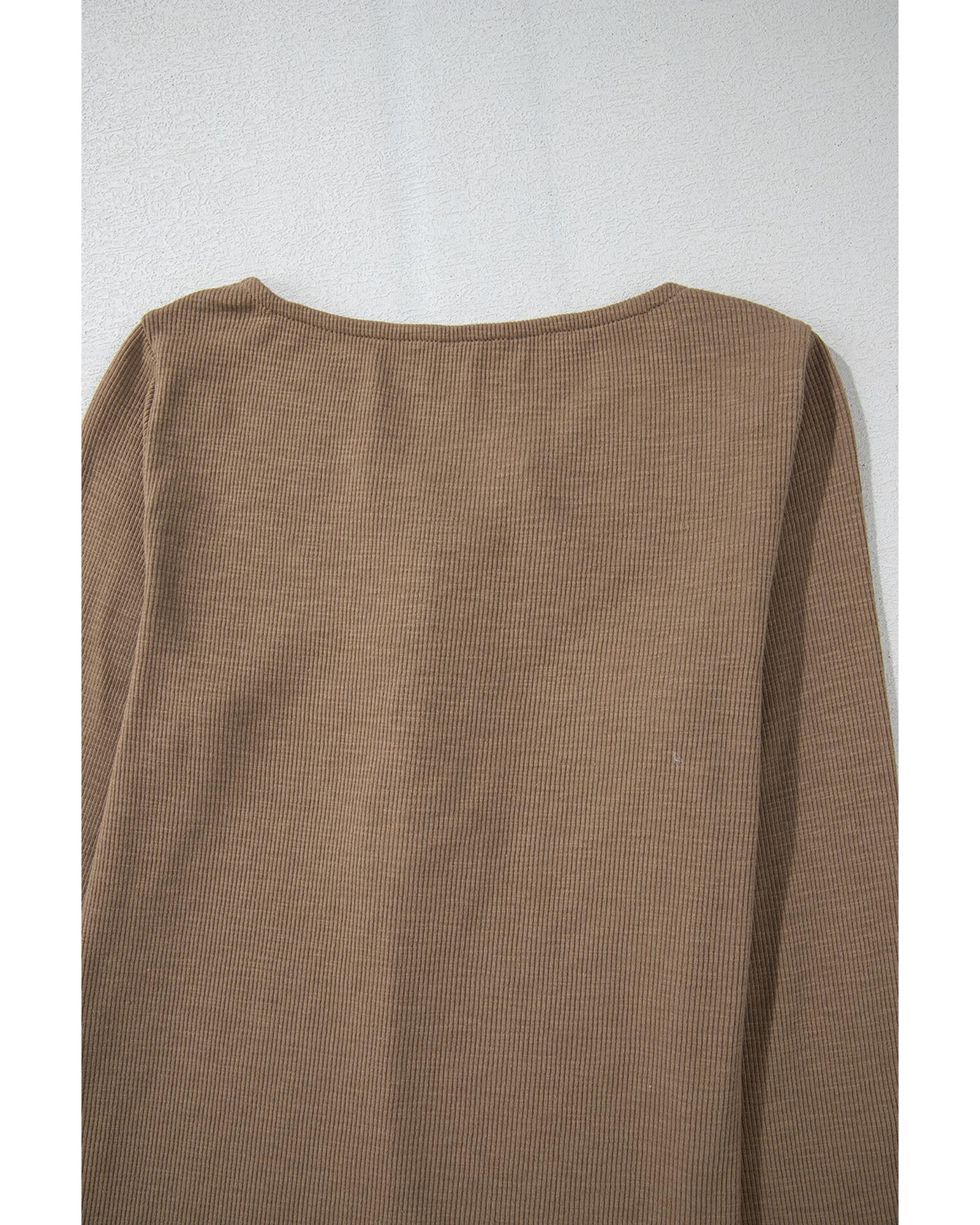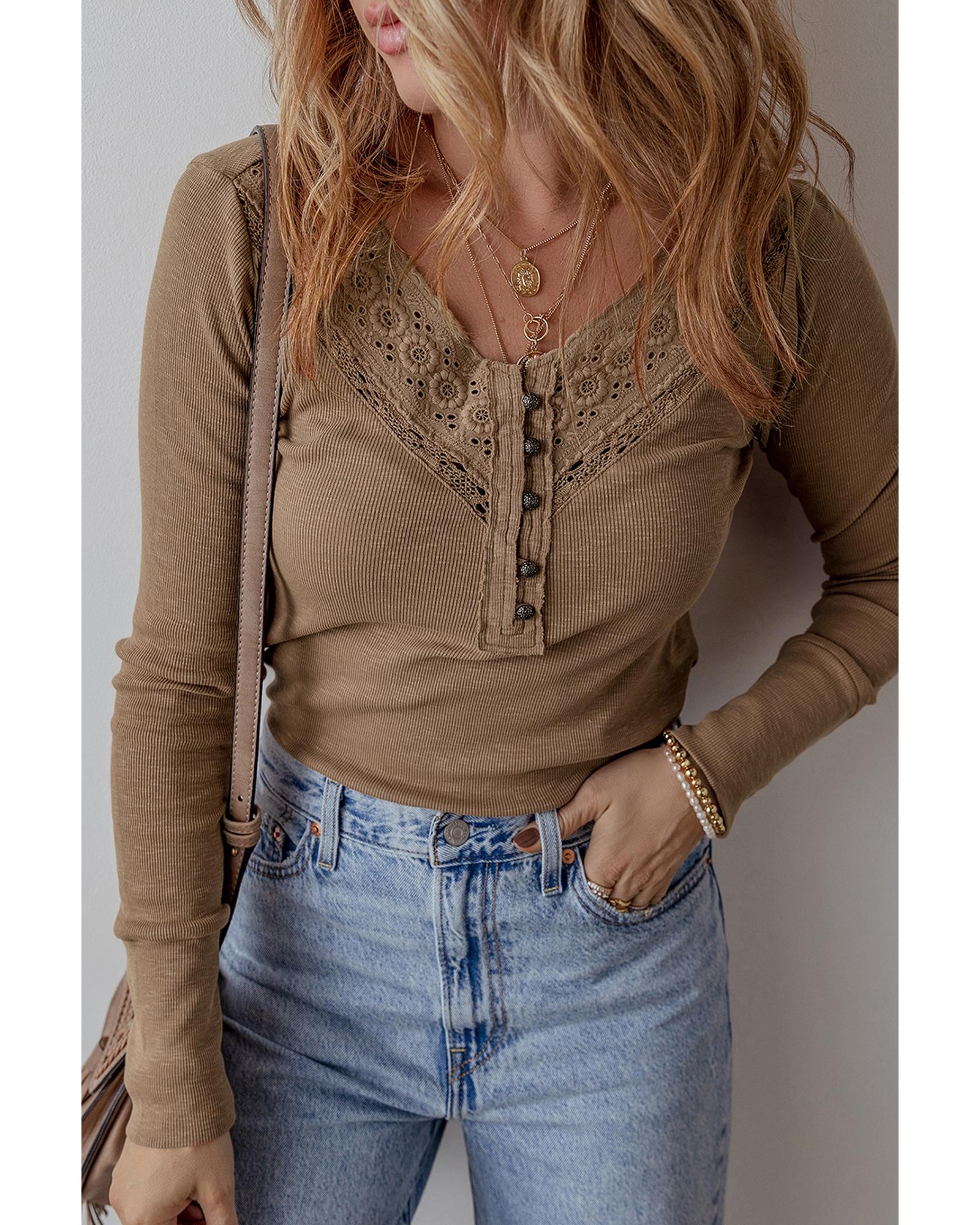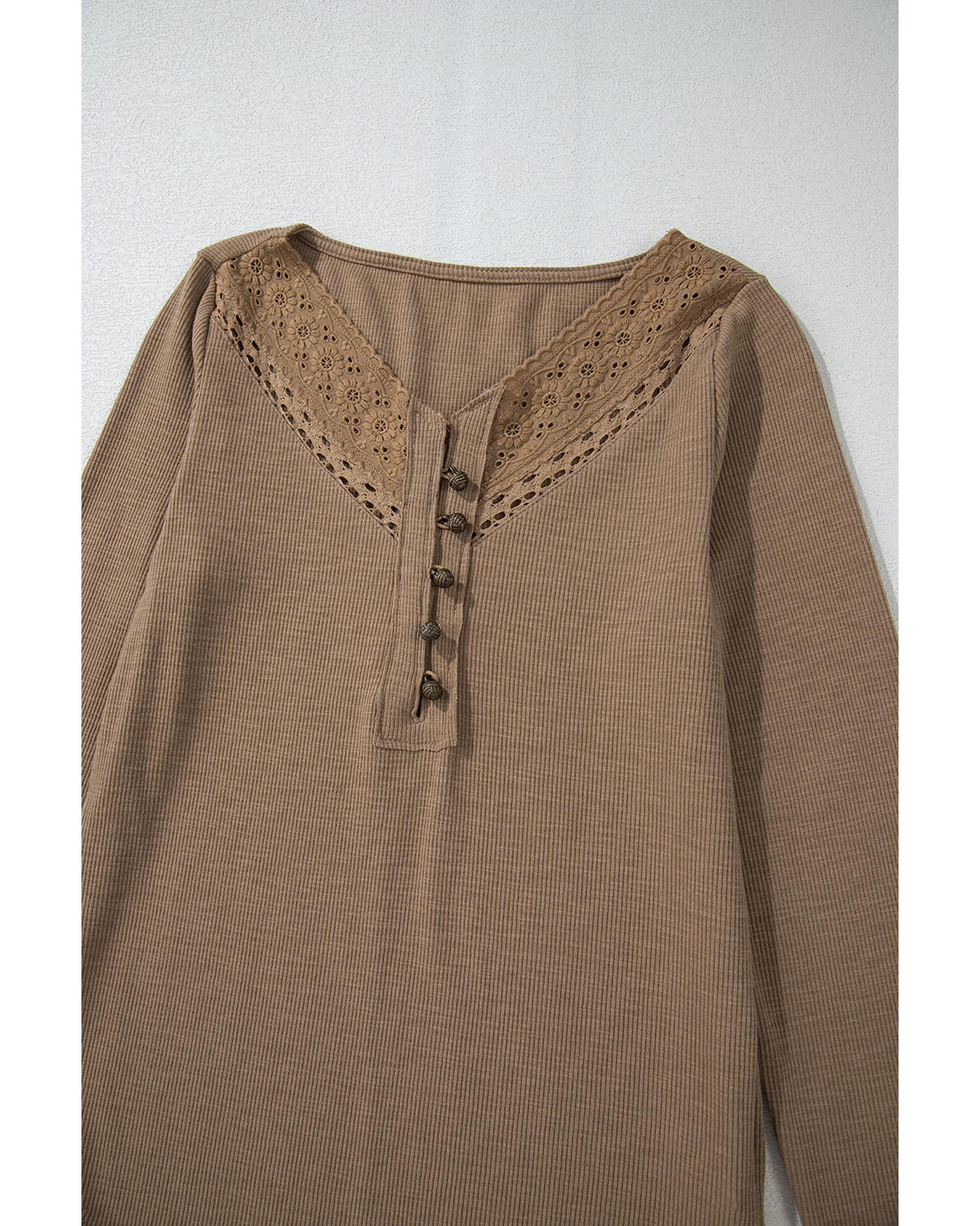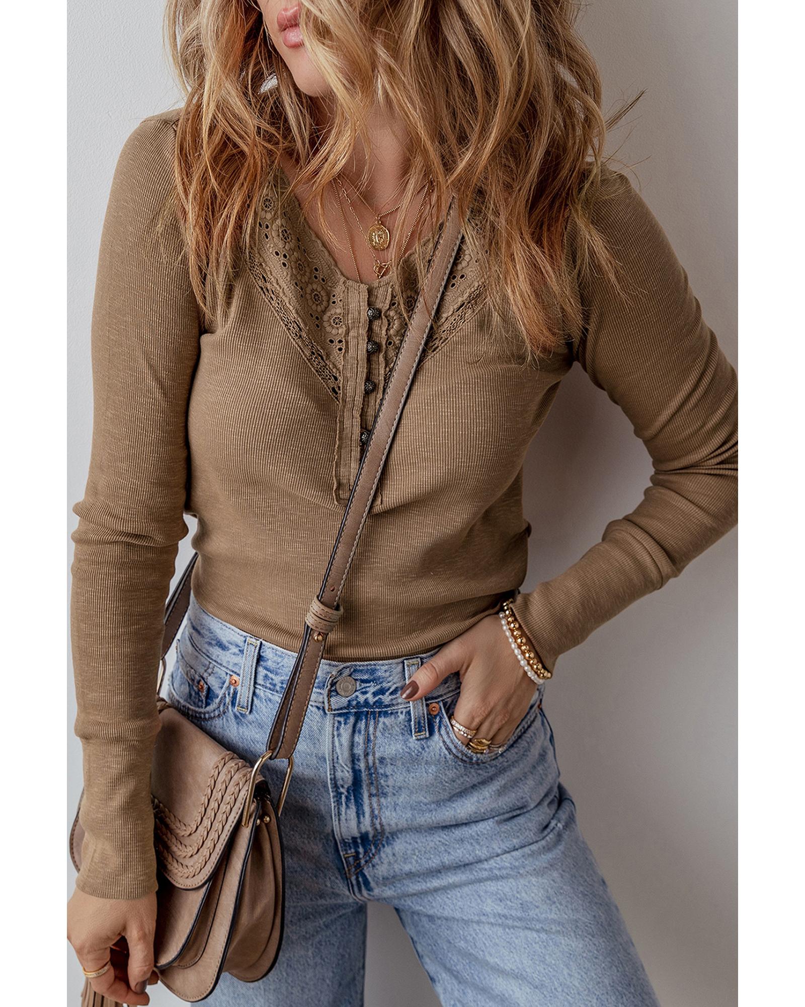Chestnut Anglaise Broider Ribbed Long Sleeve Top – L