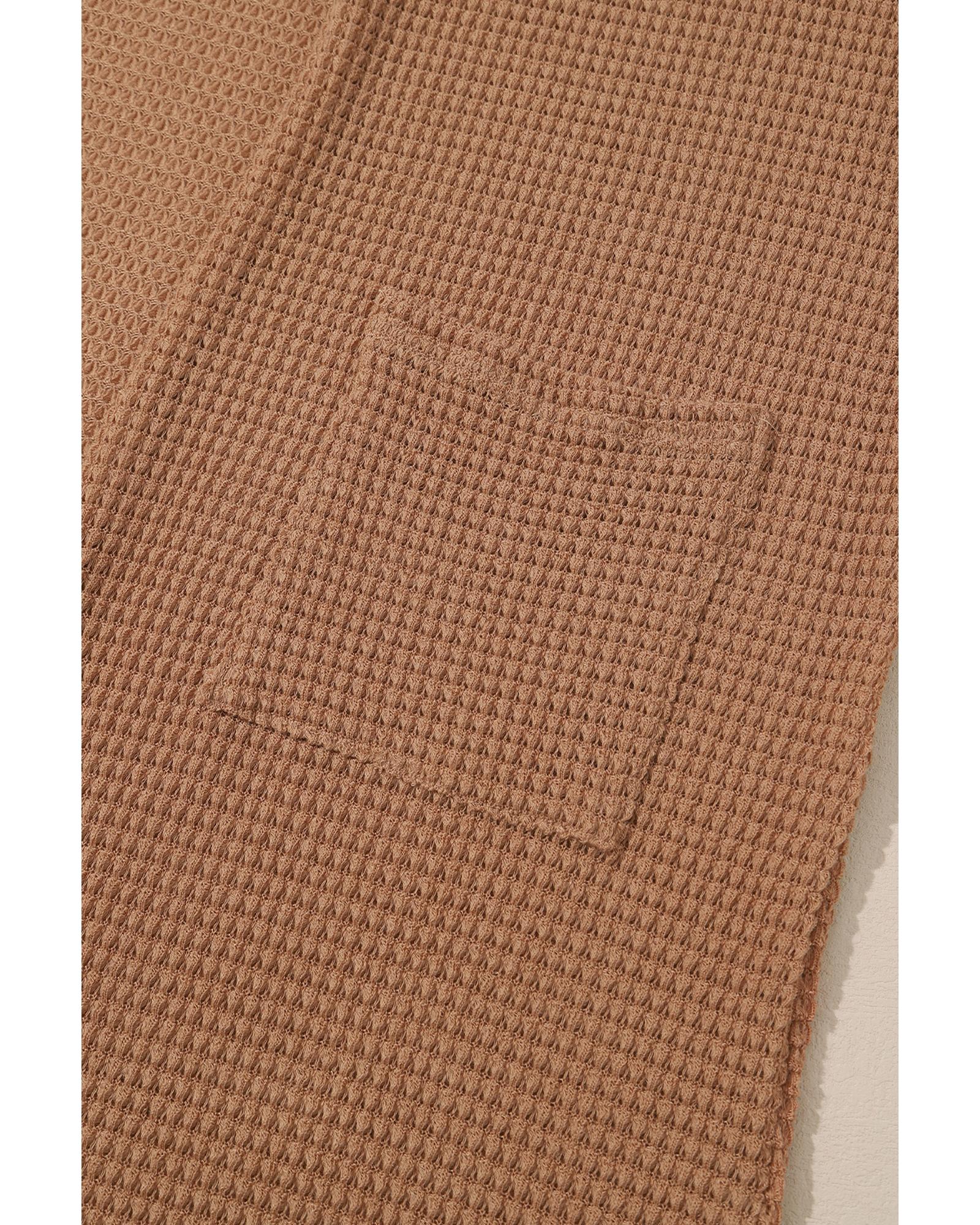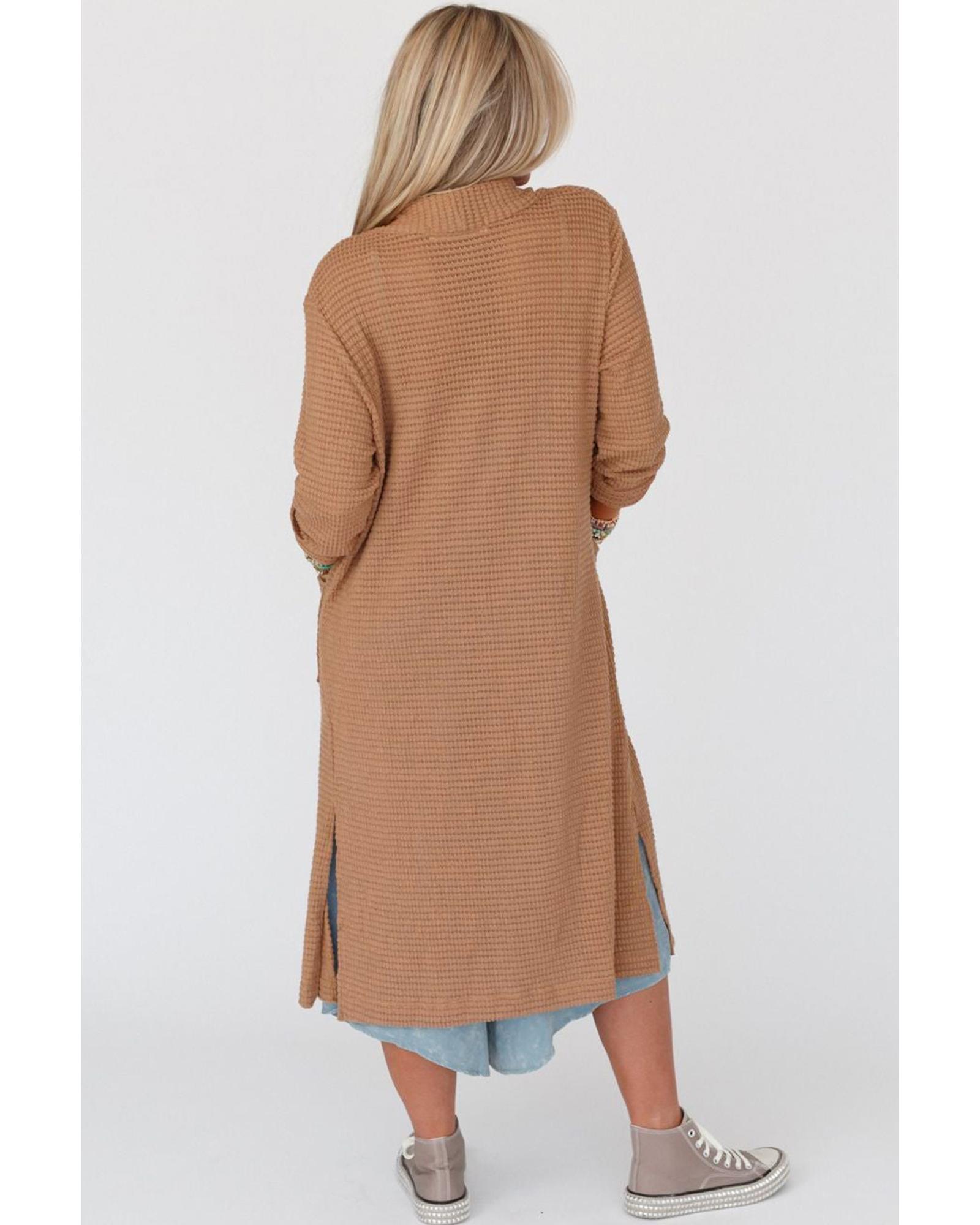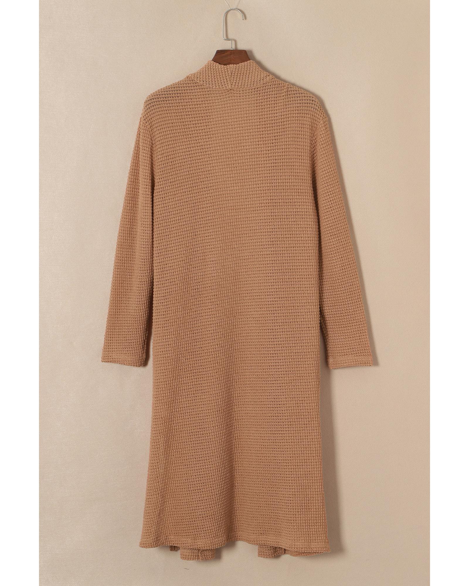 Chestnut Long Waffle Knit Cardigan with Pockets – M