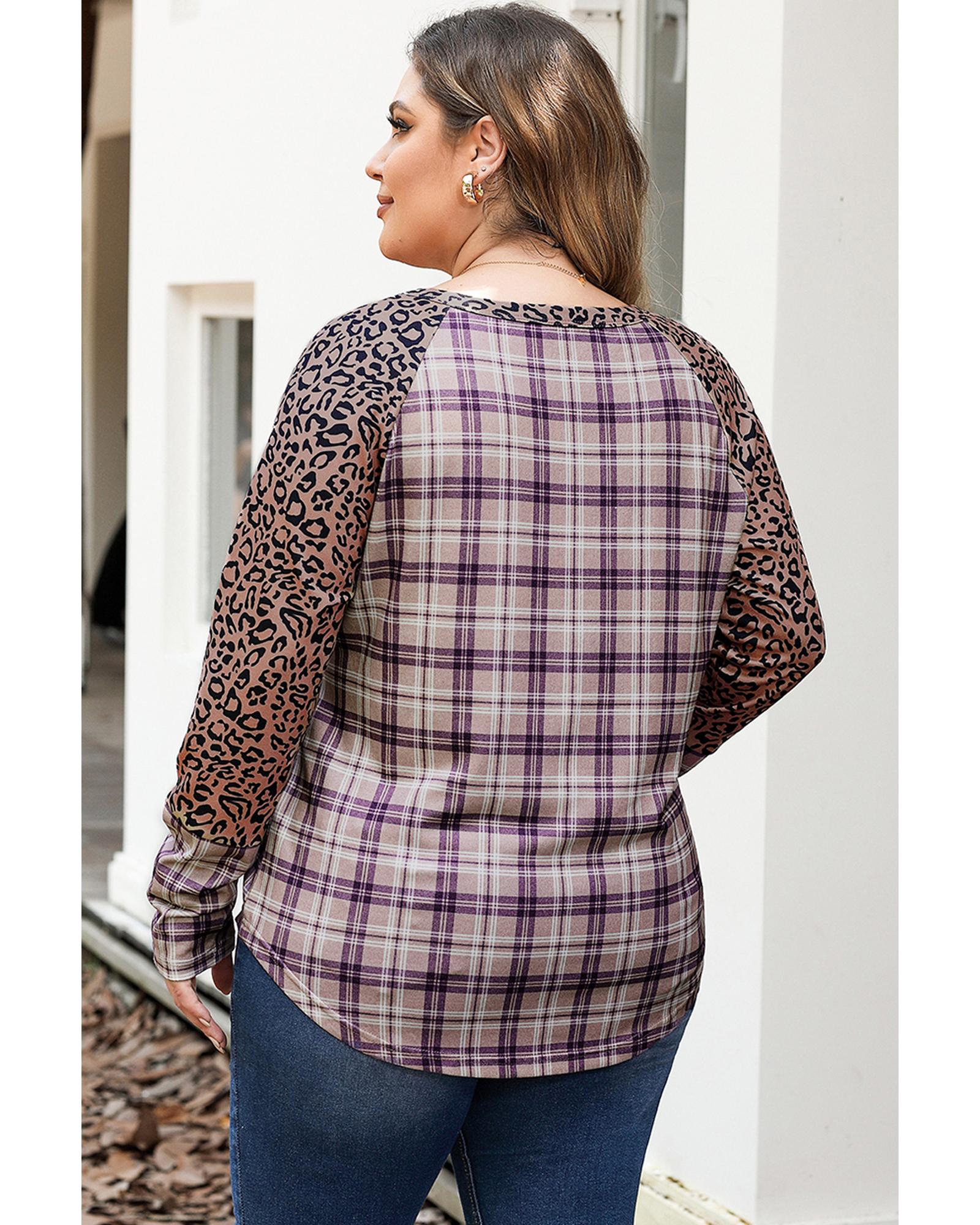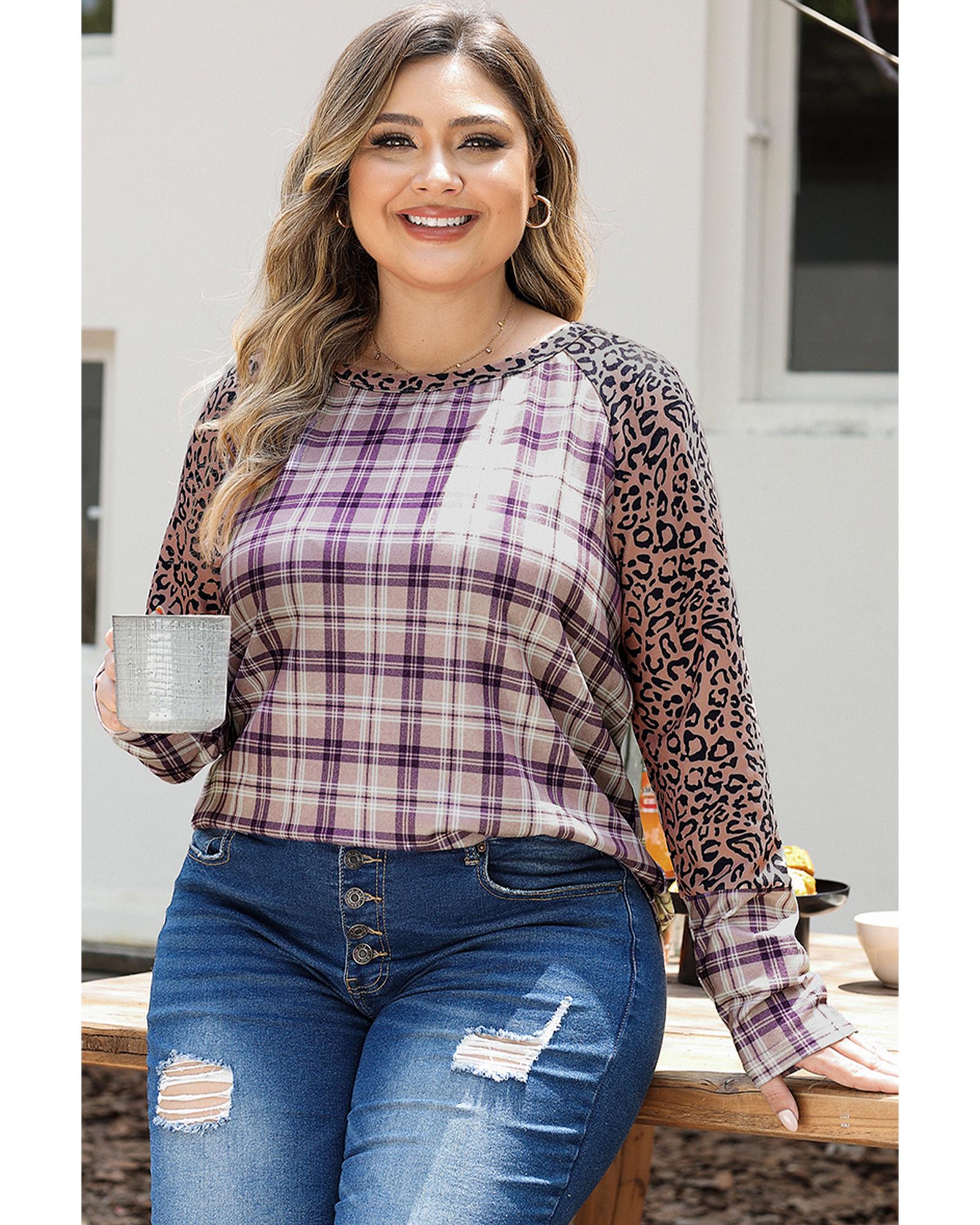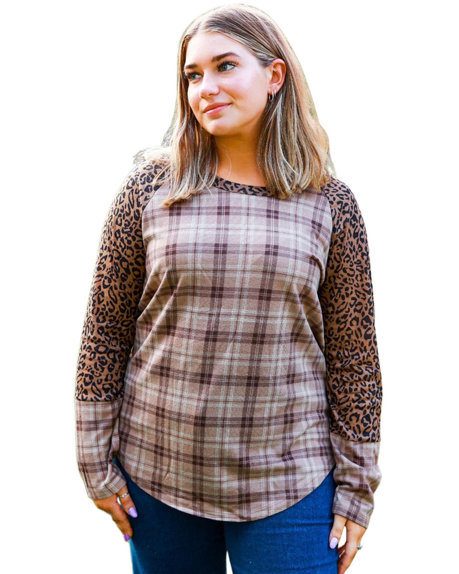 - Stay ahead of the fashion game with our Chestnut Plus Size Leopard Raglan Sleeve Plaid Topn