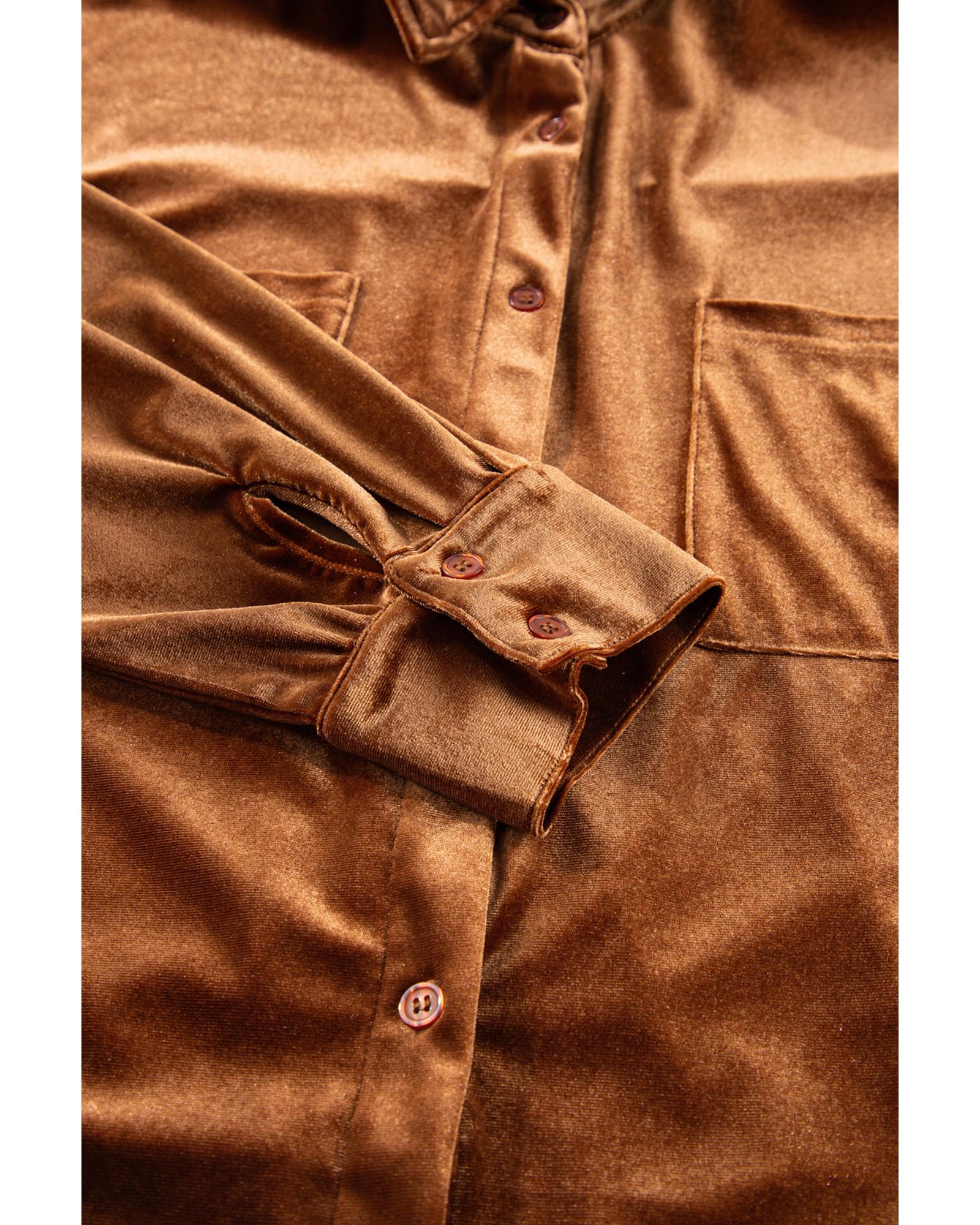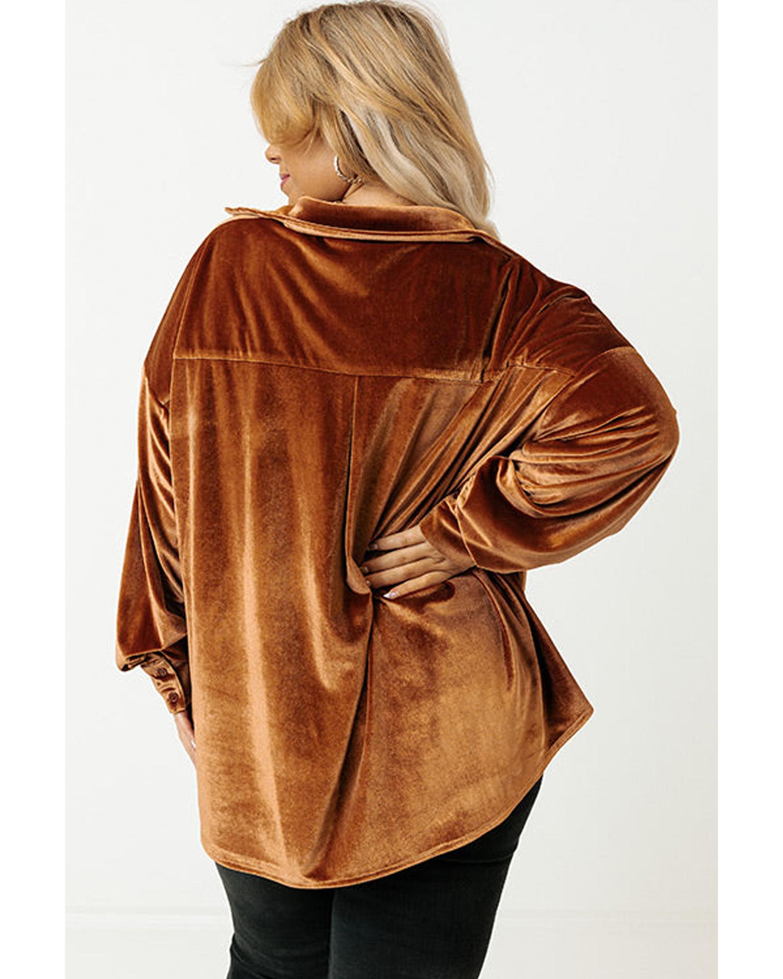 Chestnut Plus Size Velvet Chest Pocket Drop Shoulder Shirt – 4X