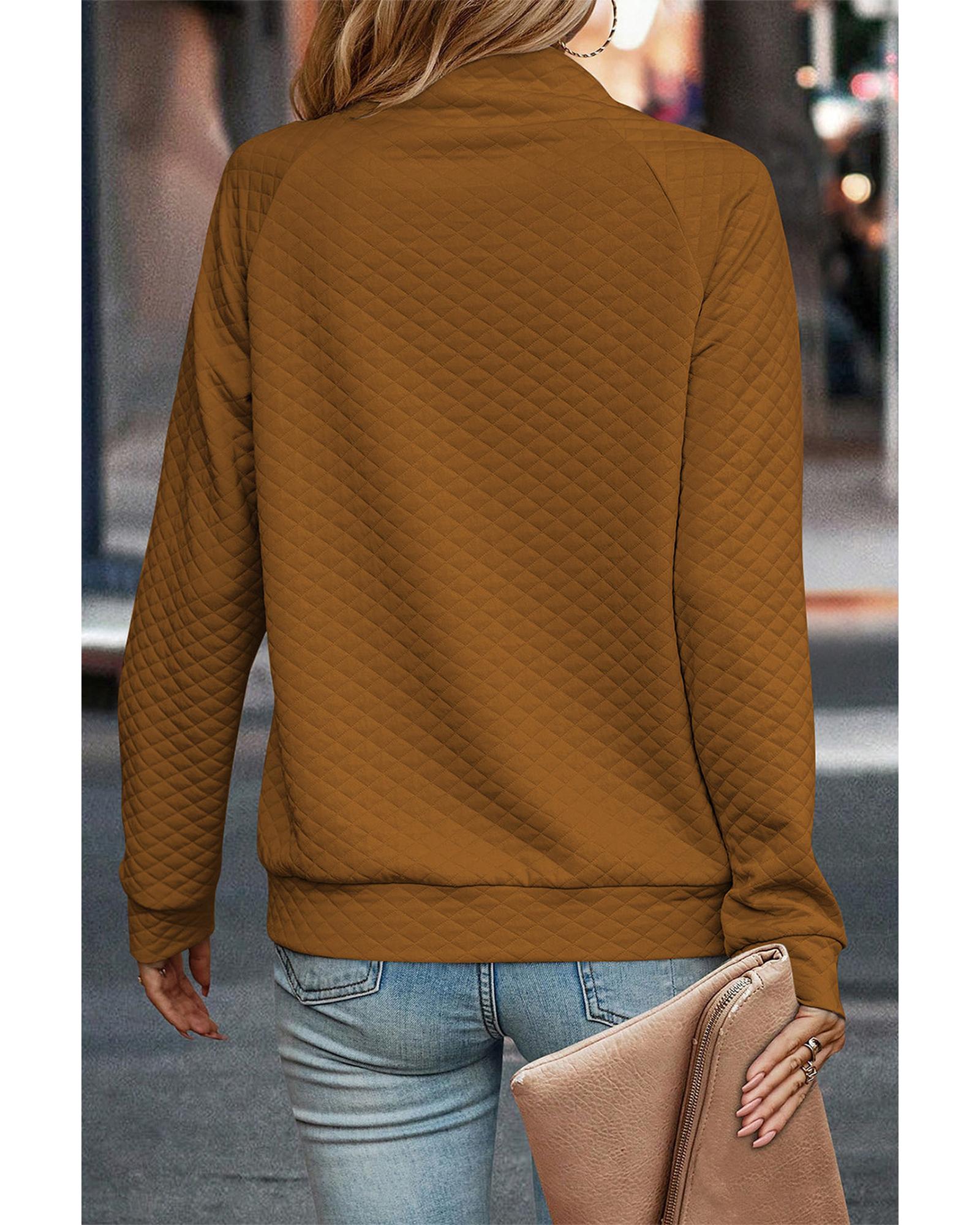 Chestnut Quilted Buttoned Neckline Stand Neck Pullover Sweatshirt – XL