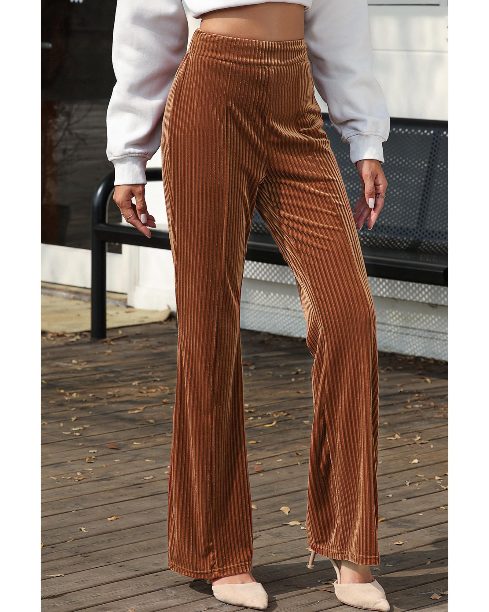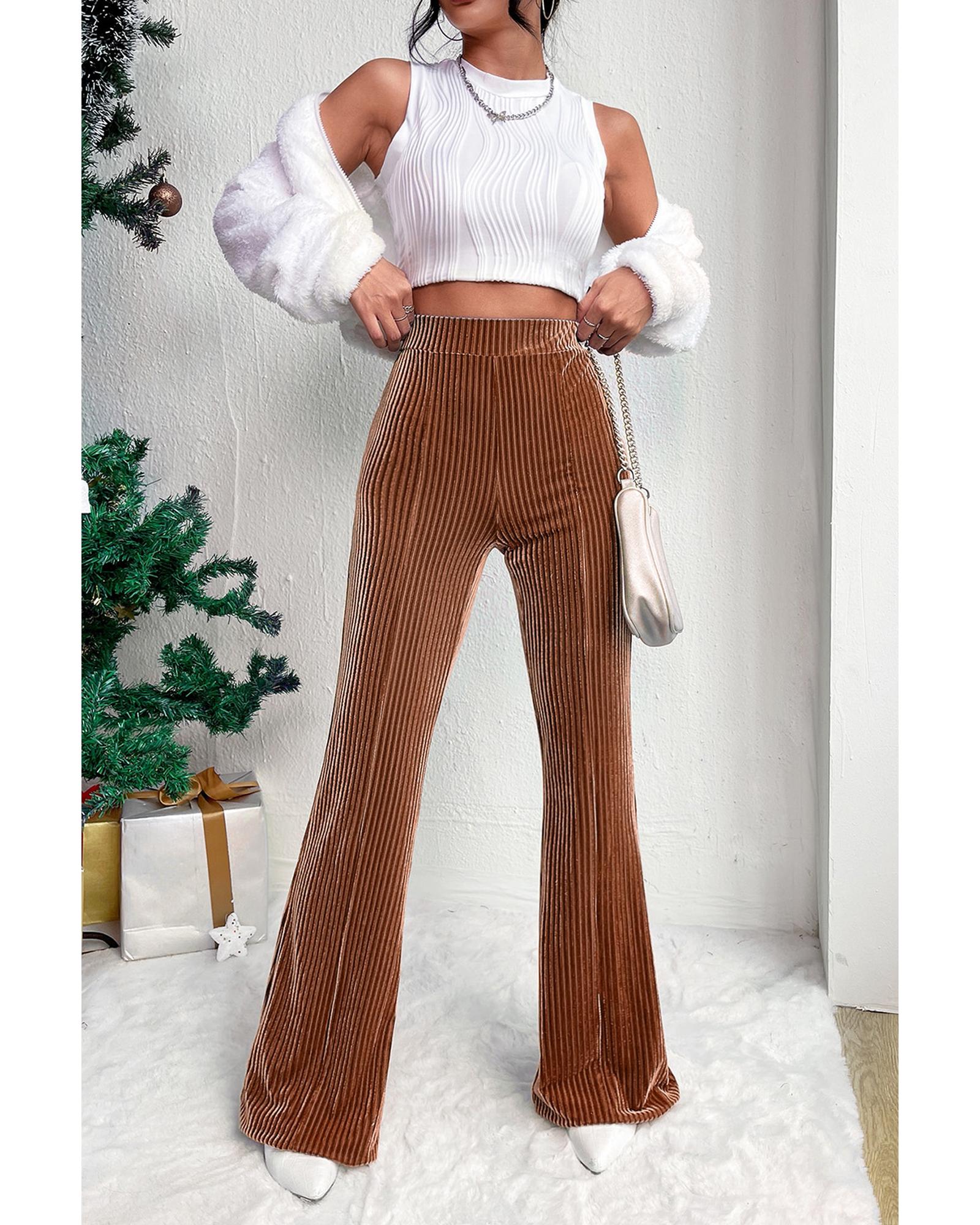 Chestnut Solid Color High Waist Flare Corduroy Pants – L