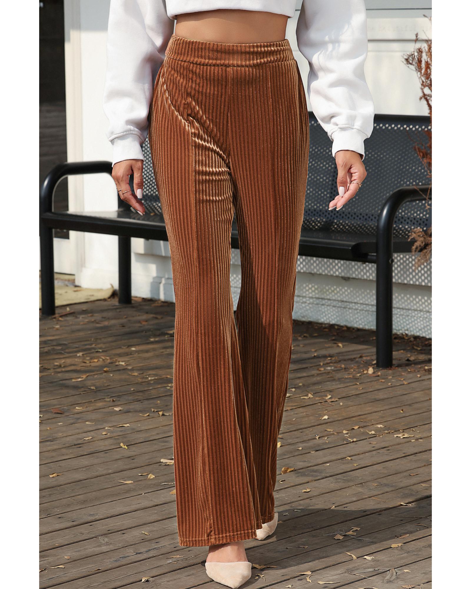 Chestnut Solid Color High Waist Flare Corduroy Pants – XL