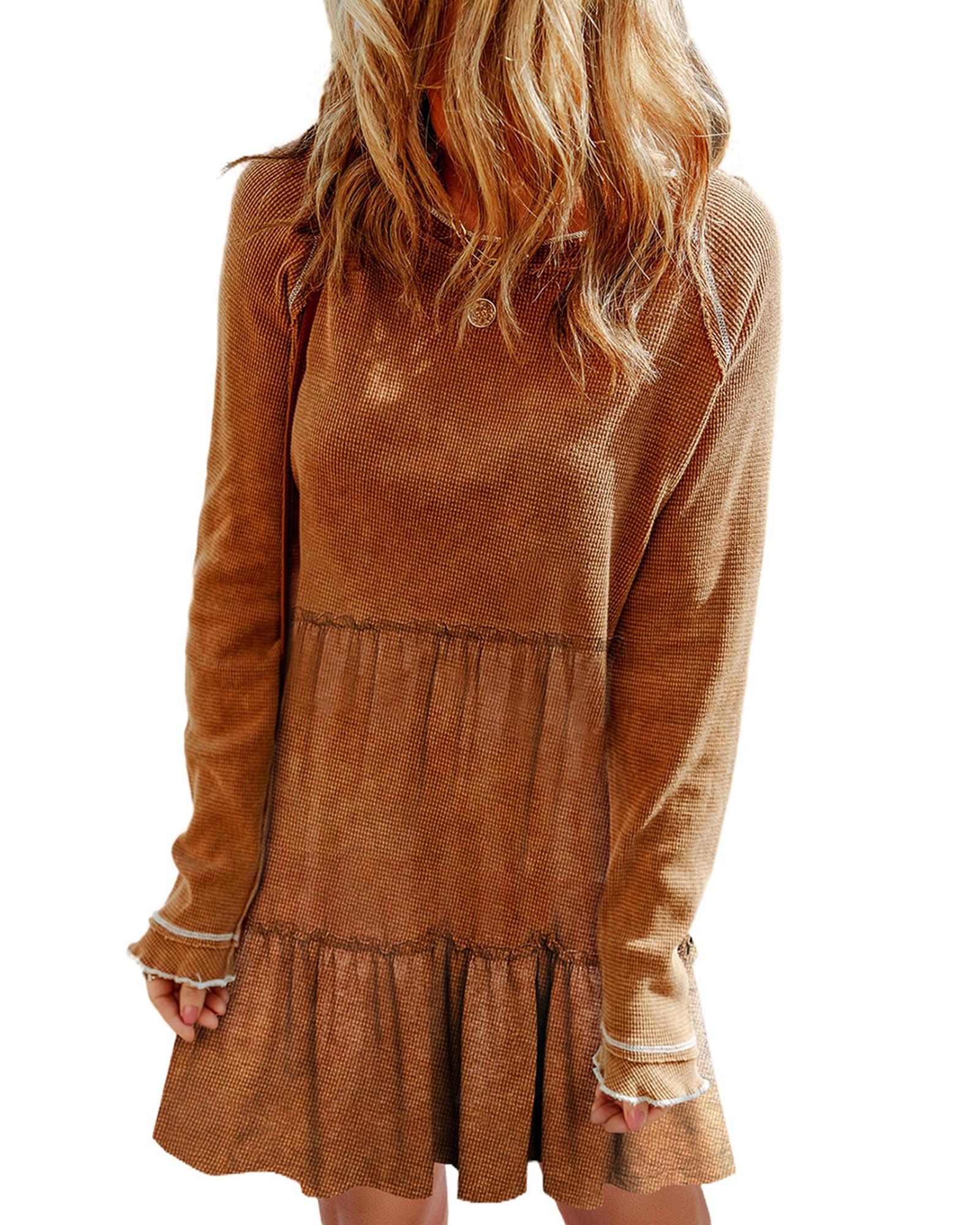 - Chestnut Textured Tiered Ruffled Long Sleeve Mini Dress