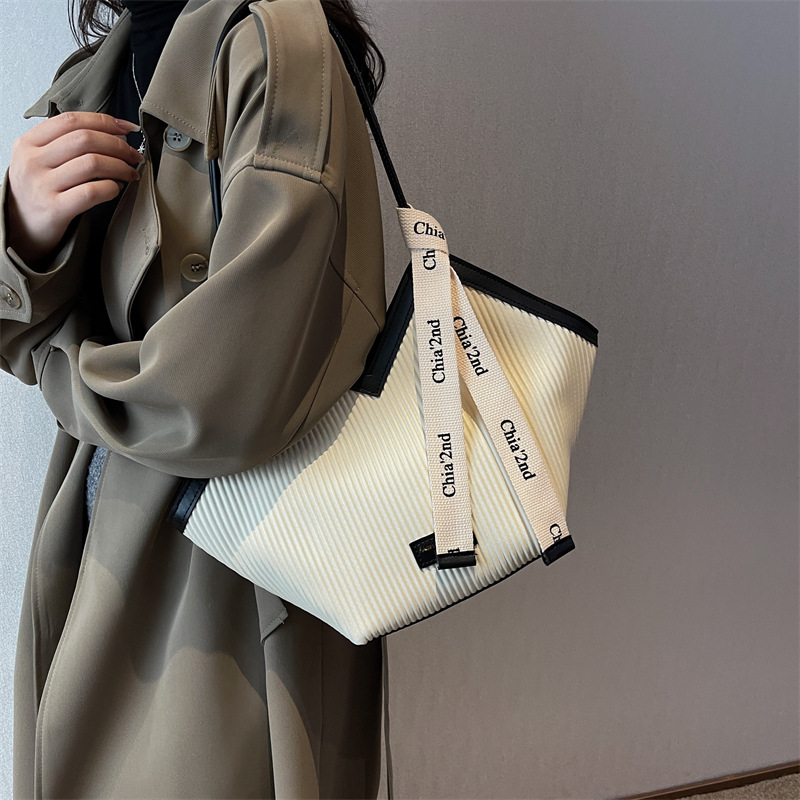 Elevate your everyday look with this Chic Textured PU Leather Tote Bag. Featuring a unique V-cut topline and a stylish vertically ribbed texture, this bag offers a modern and sophisticated aesthetic. It is crafted from durable PU material and includes comfortable shoulder straps with a distinctive decorative ribbon accent that adds a playful touch. The spacious interior is perfect for carrying your daily essentials, making it an ideal choice for work, shopping, or casual outings. Its lightweight design (0.42kg) ensures comfortable carrying throughout the day. Available in a variety of fashionable finishes to complement any outfit.