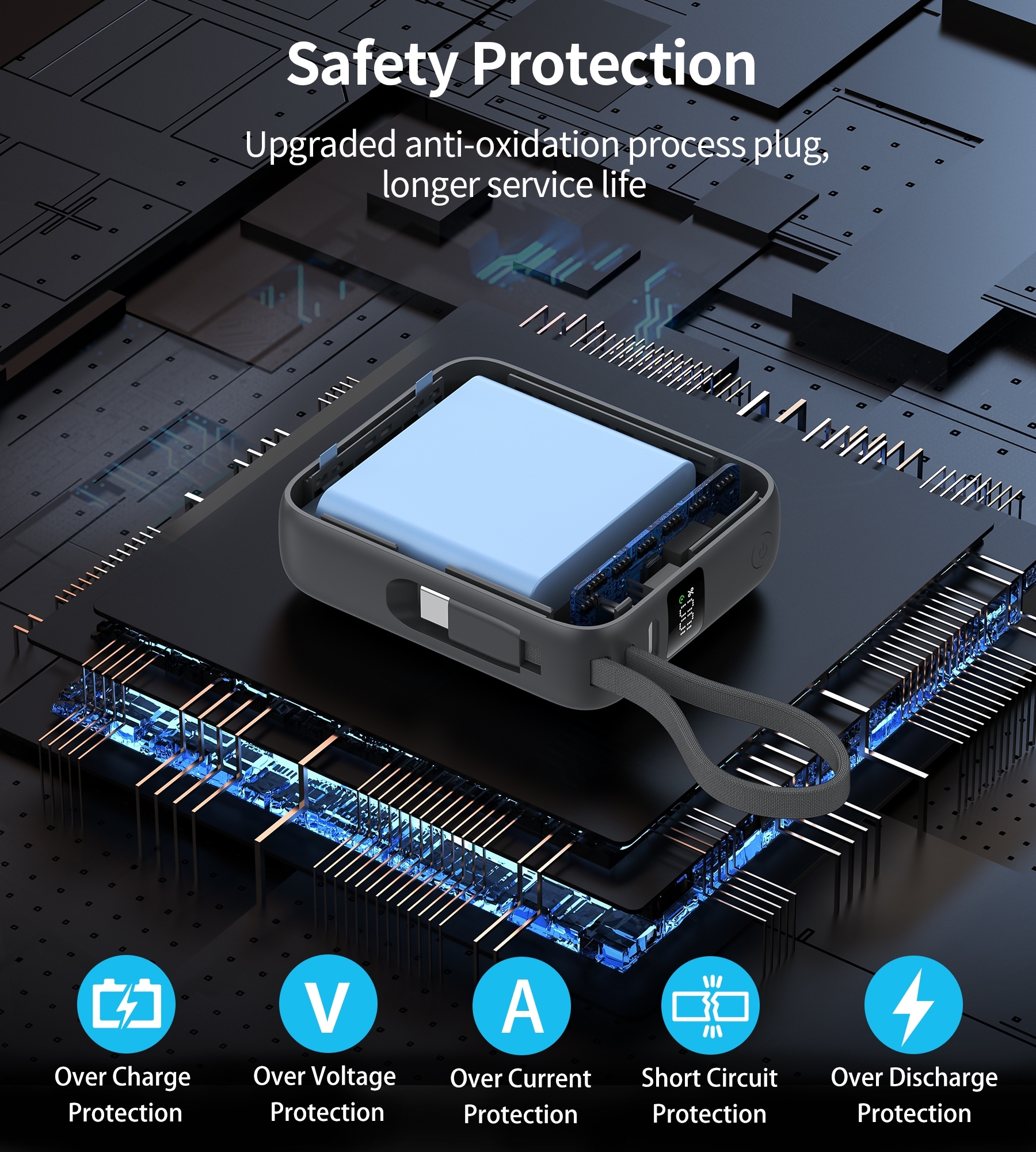 The hanging rope, used as a USB-C cable, making it compact, lightweight, and convenient for charging anywhere, anytime.