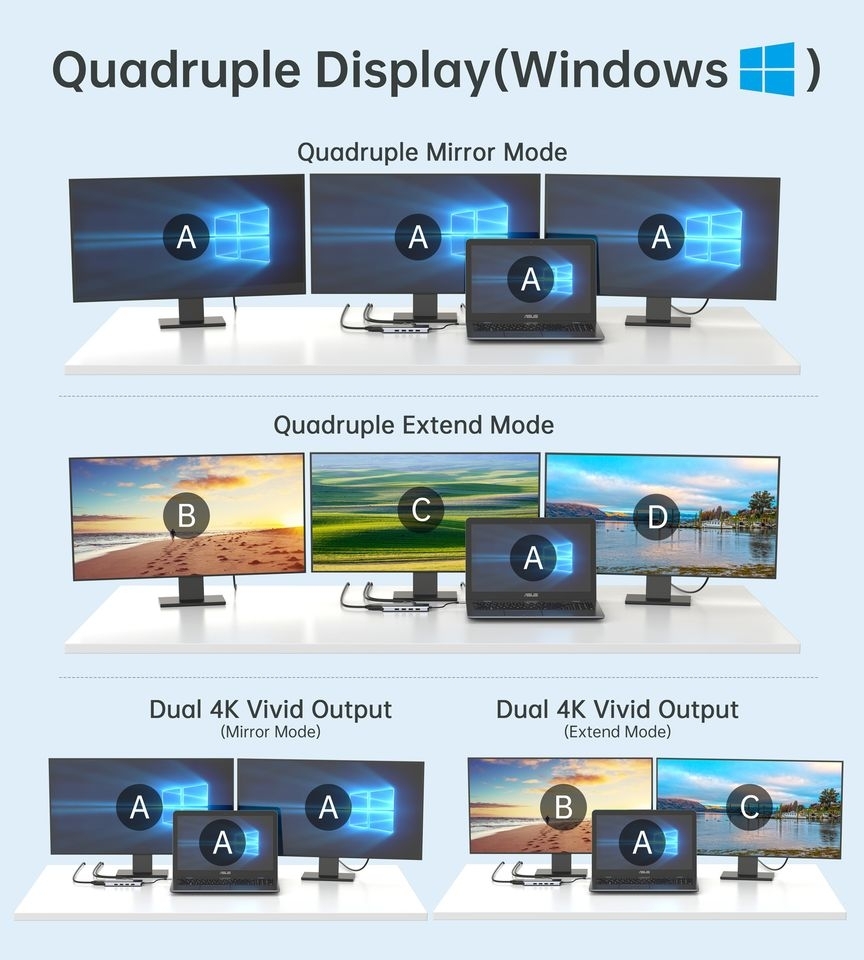 Easily connect three additional monitors.Output up to 4K UHD through HDMI ports.