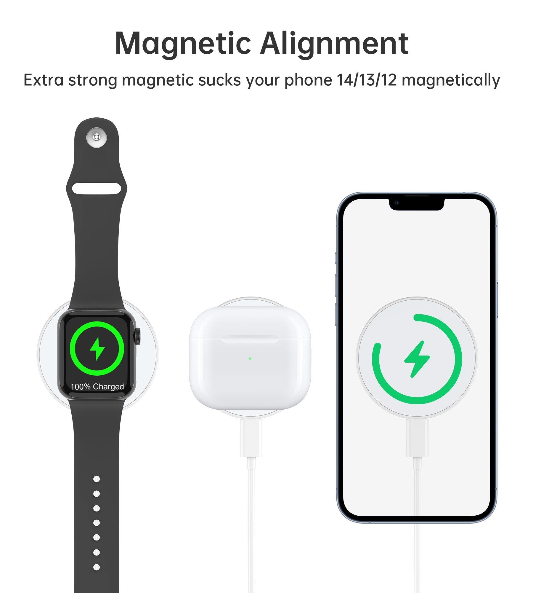 • Compatible with charging iPhone, AirPods or Apple Watch
