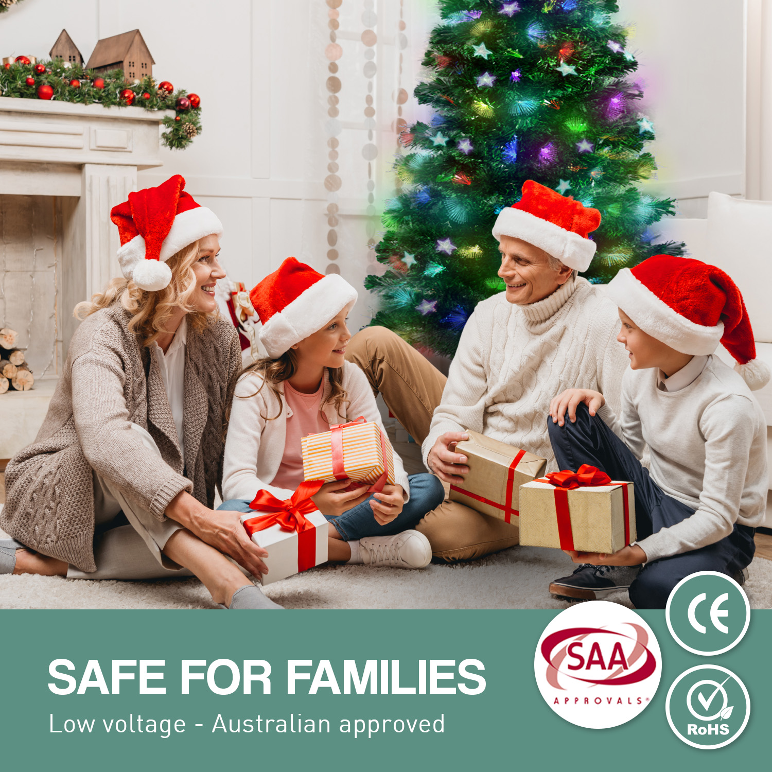 Create a stunning display this holiday season with the Christabelle Pre Lit Fibre Optic Christmas Tree. This showstopping centrepiece comes complete with fibre optic lights, built-in star ornaments and a star tree topper to create a truly dazzling decoration. Imagine opening your Christmas presents under the multicoloured twinkling lights!