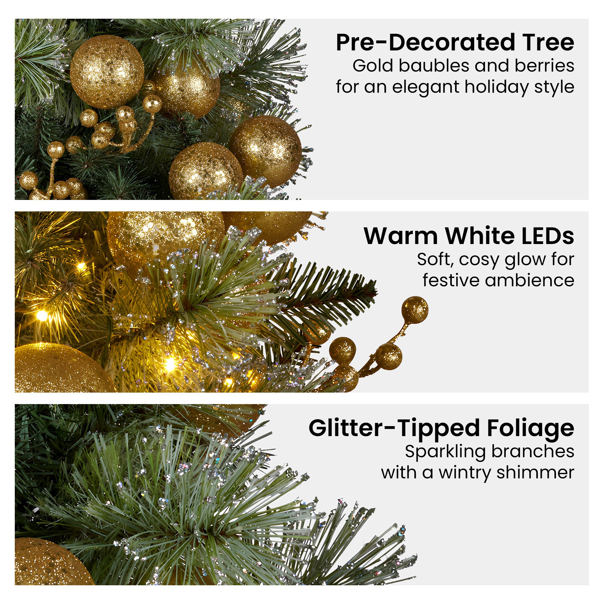 - Decoration: Gold Baubles and Berries