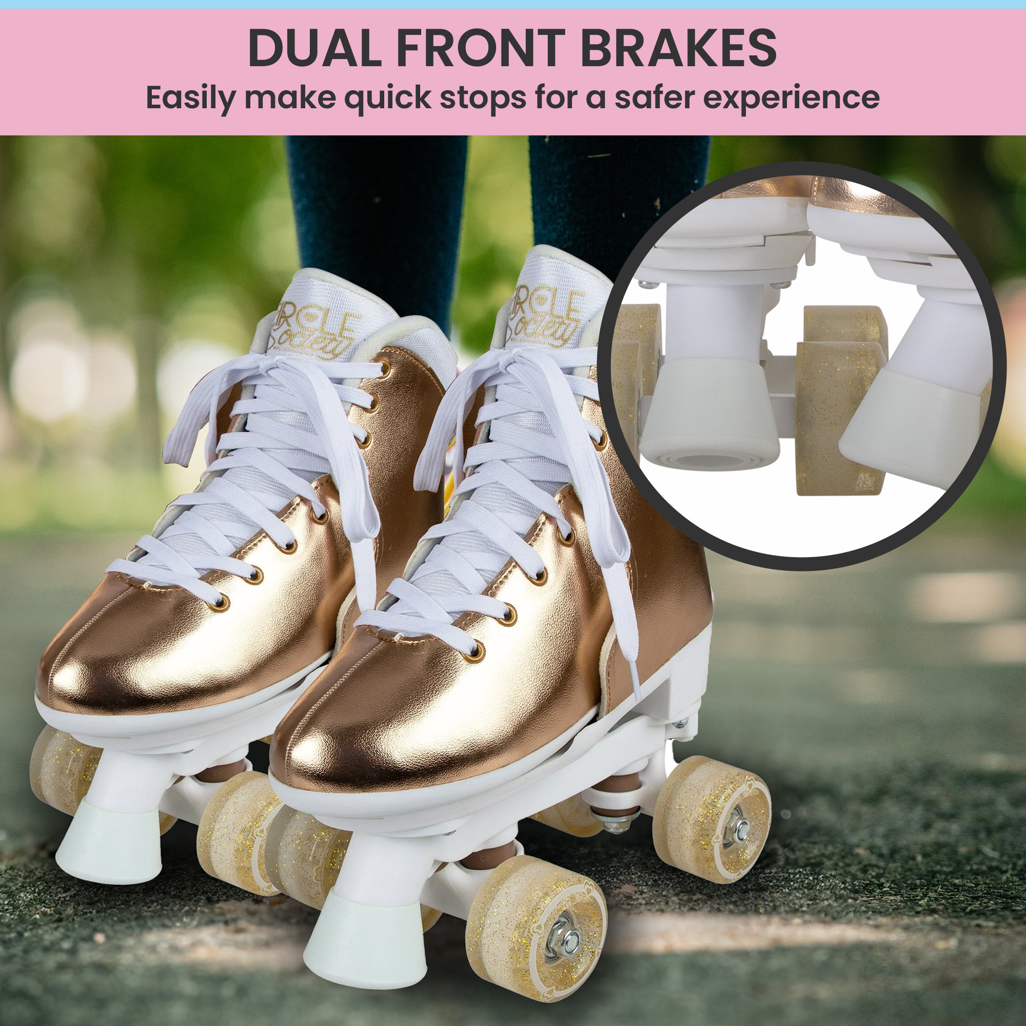 Circle Society Adjustable Quad Kids Roller Skates In Metallic Rose Gold
