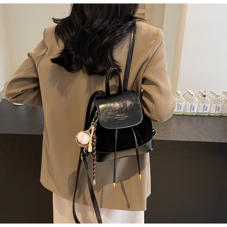 Upgrade your style with this chic and practical mini backpack. Made from high-quality suede and designed with a vintage aesthetic, this backpack is perfect for daily use, travel, or as a unique addition to your wardrobe. The attached charm adds a playful and elegant touch to your ensemble.