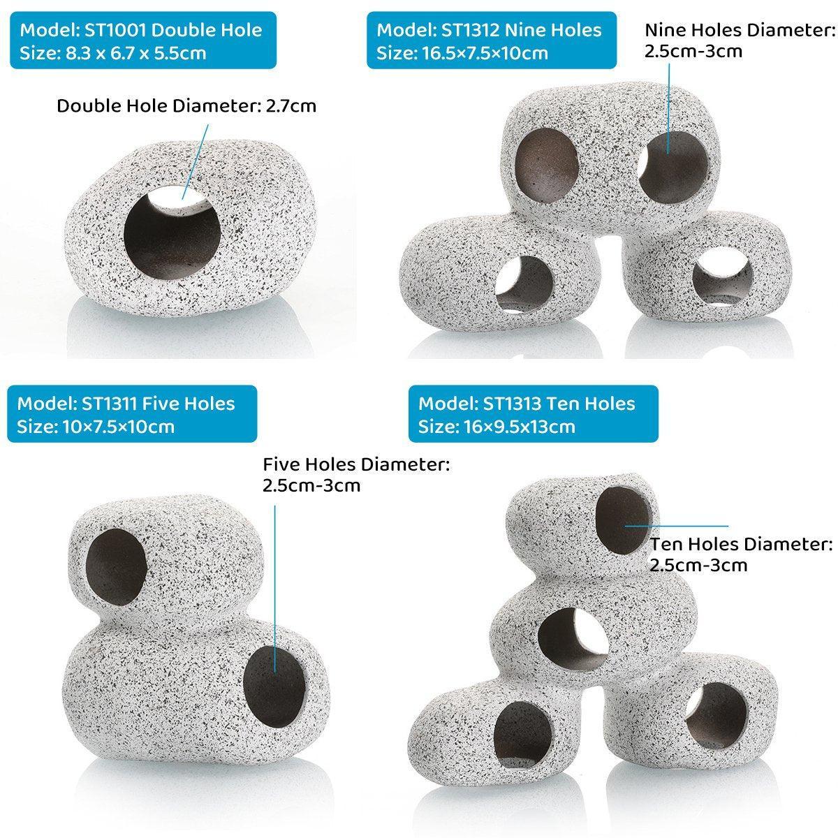 Enhance your aquarium with our versatile and stylish Aquarium Rock Cave Decoration Pieces. Made from high-quality clay, these shrimp houses and cichlid shelters offer a natural and safe environment for your fish. These decorative pieces provide the perfect hiding spots, breeding grounds, and play areas for your aquatic pets, ensuring a healthier and more vibrant aquarium. The smooth surfaces and stackable design add aesthetic value while preventing any damage to your fish. Available in four distinct styles, these decorations will transform your aquarium into a captivating underwater landscape.