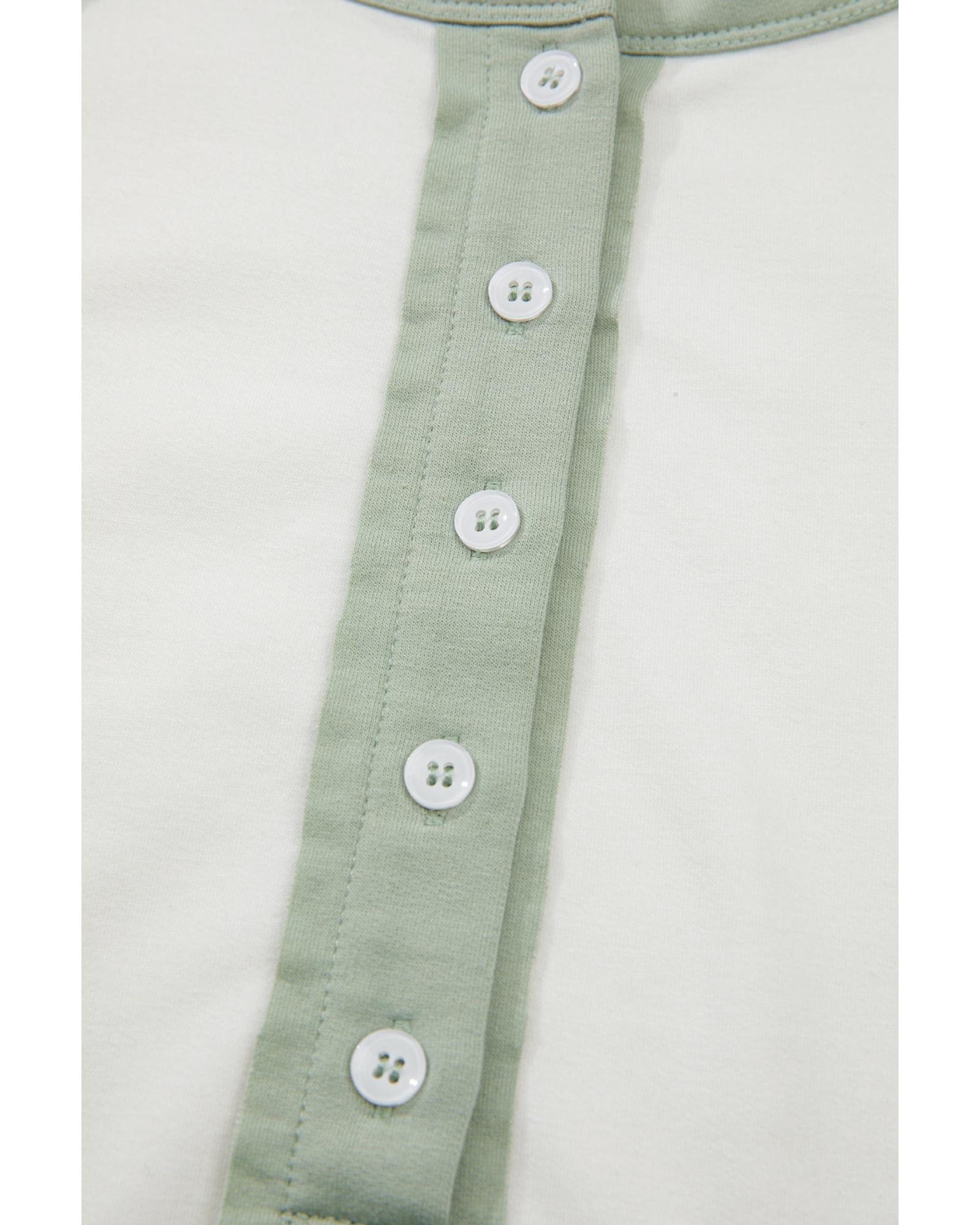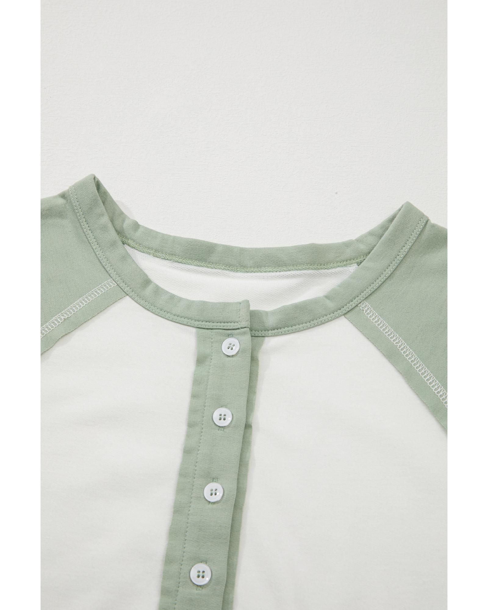 Clearly Aqua Colorblock Raglan Short Sleeve Half Buttons High Low T Shirt – S