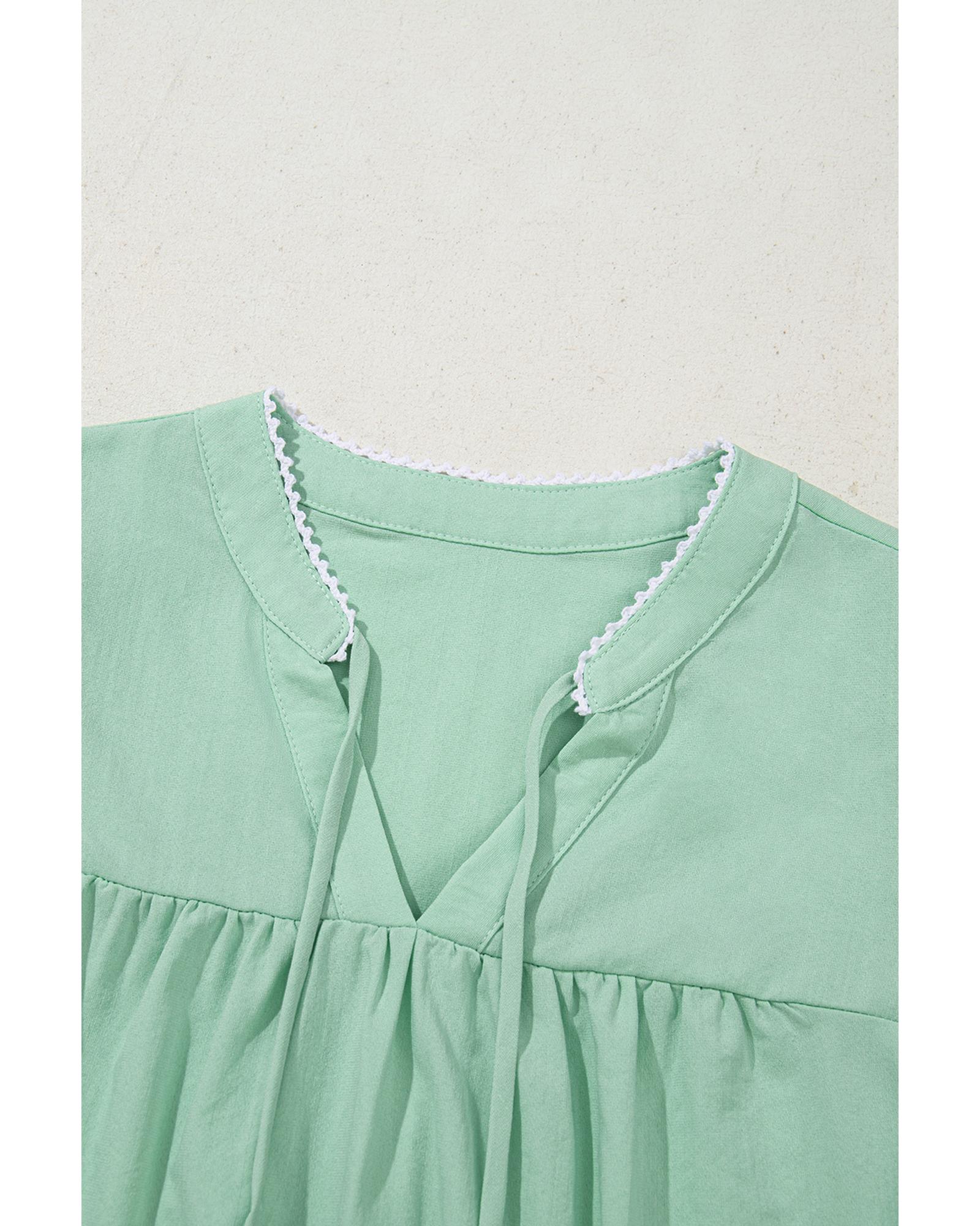 Clearly Aqua Floral Embroidered Puff Sleeve Split Neck Blouse – S