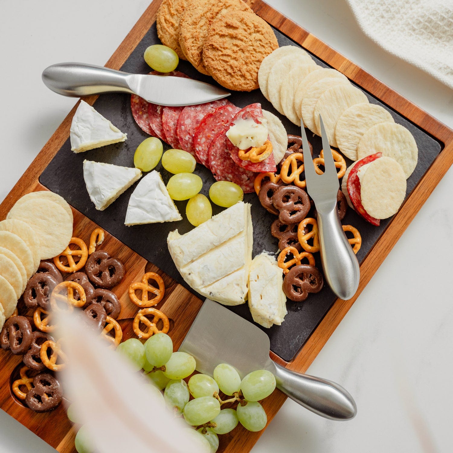 - 1 x Flat cheese knife (chisel)-used for semi-soft to semi-hard cheeses such as Swiss & Gruyere