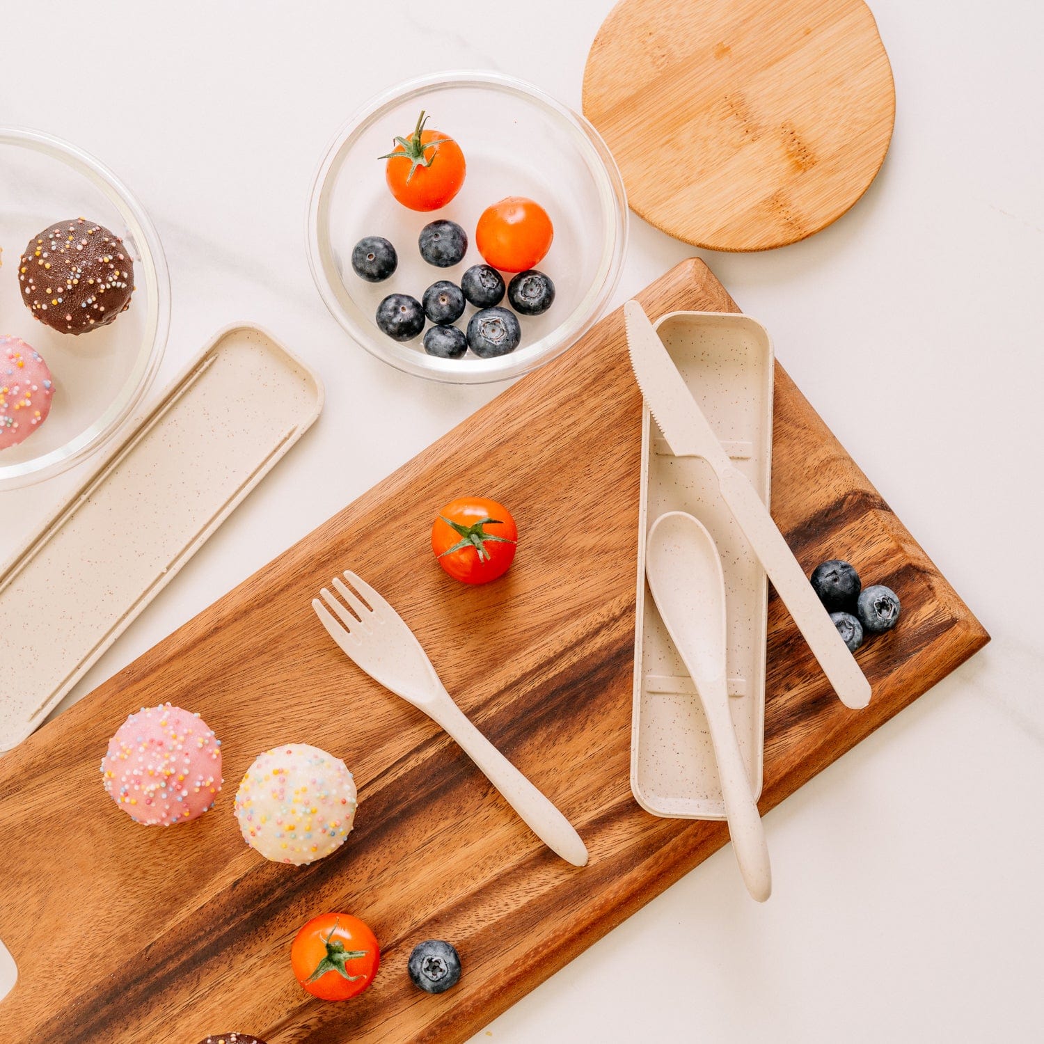 Clevinger Reusable Wheat Straw Fibre Cutlery Set with Case – Beige