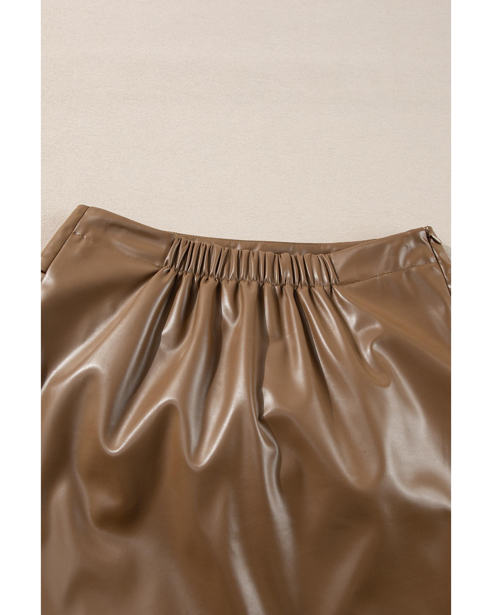 Coffee Bowknot Faux Leather Mini Skirt - XL