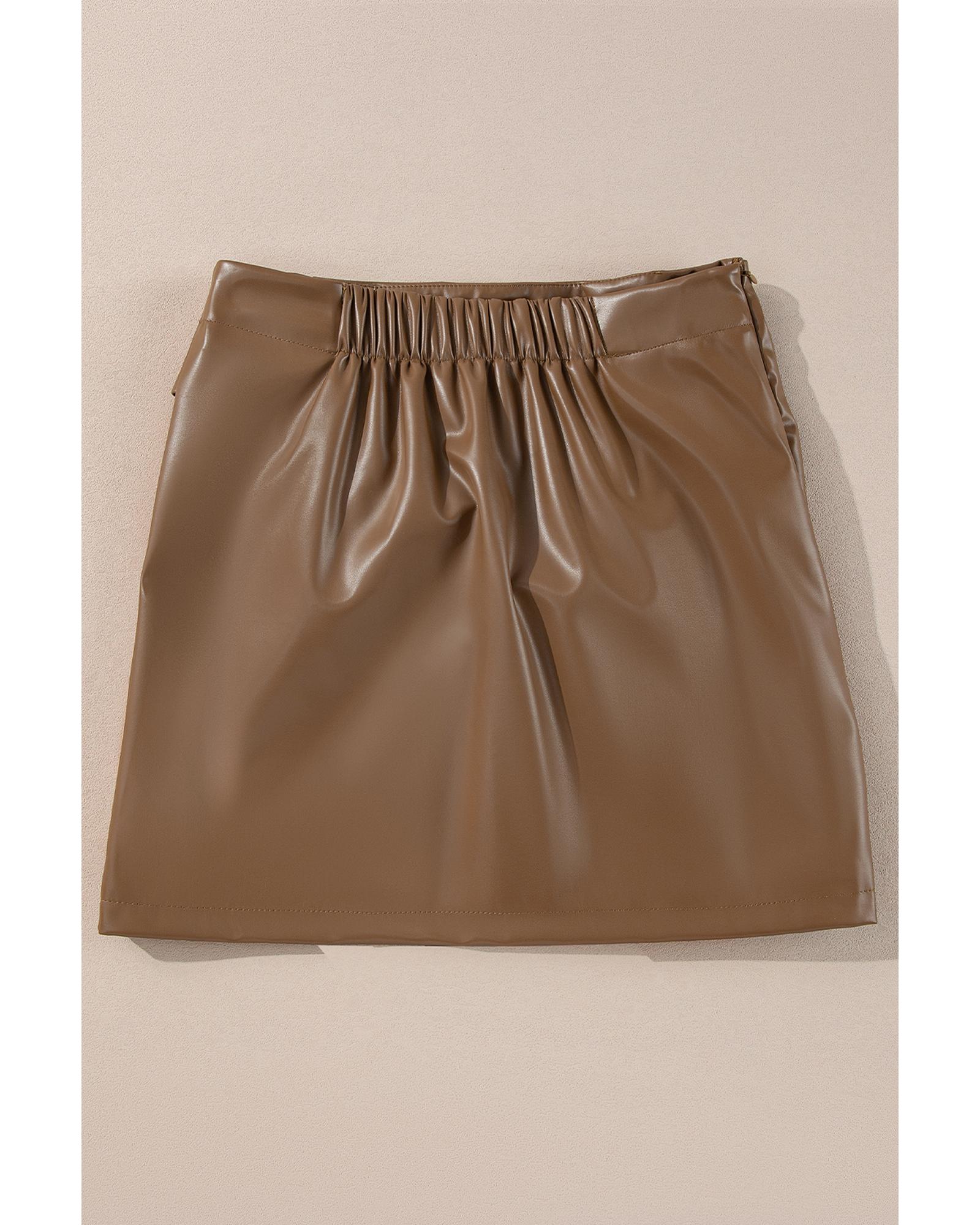 Coffee Bowknot Faux Leather Mini Skirt – XL