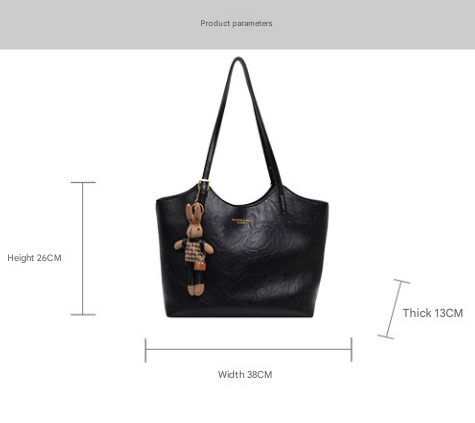 Elevate your everyday style with this chic black tote bag. Made from high-quality PU leather and featuring a cute bear keychain, this bag is both practical and fashionable, making it an excellent accessory for work, shopping, or casual outings.