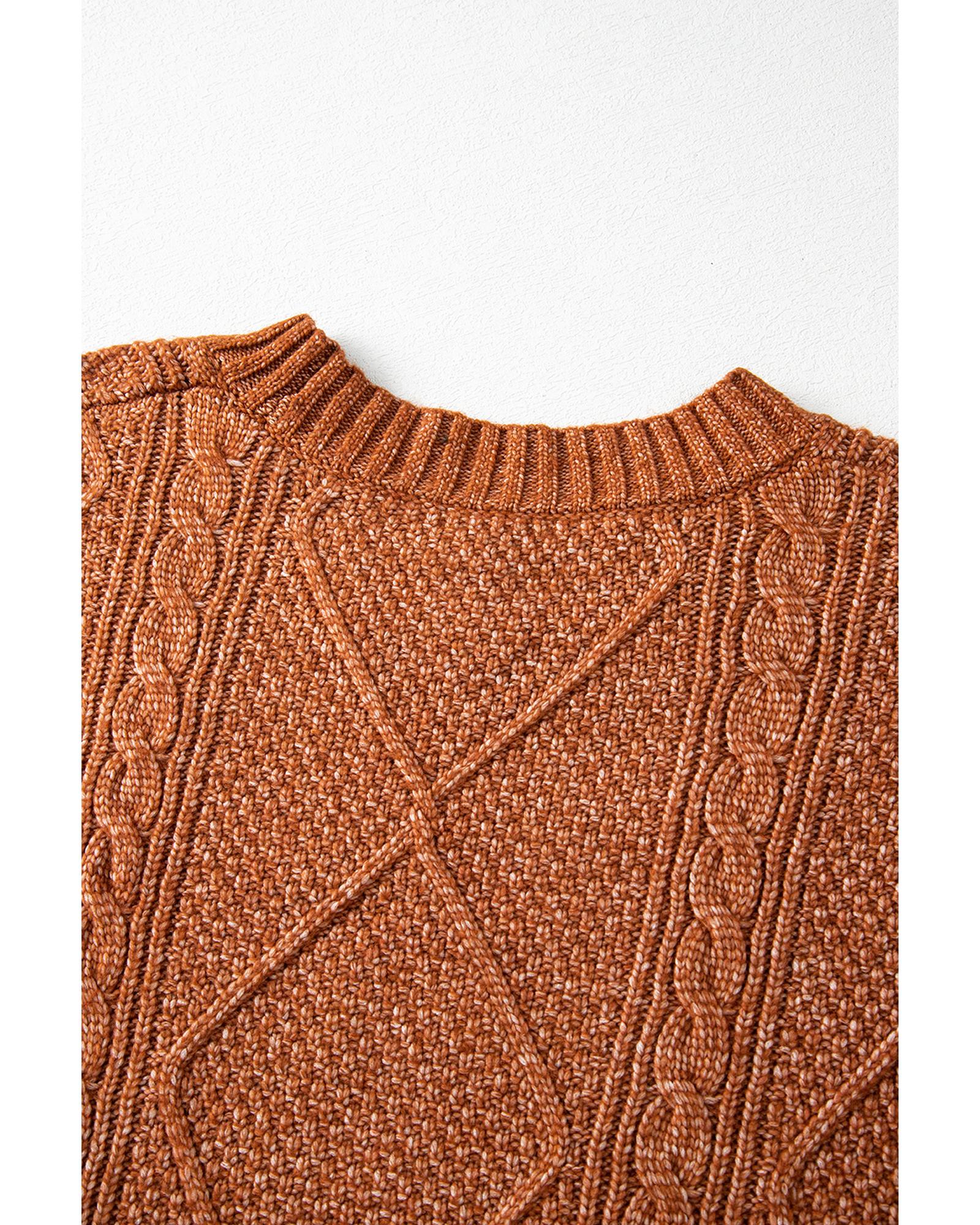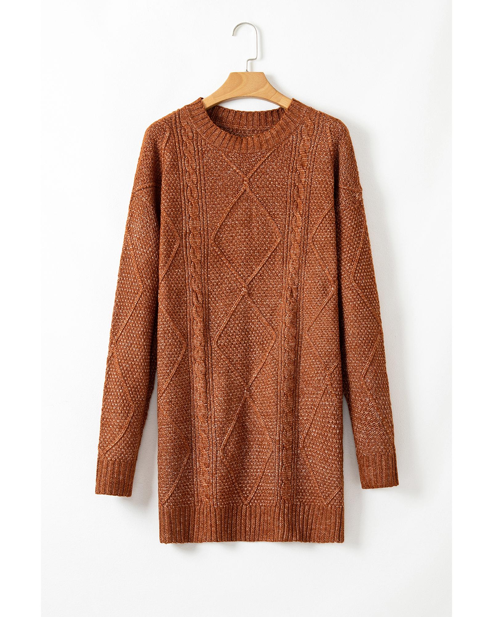 Coffee Cable Knit Drop Shoulder Loose Fit Sweater Dress – XL