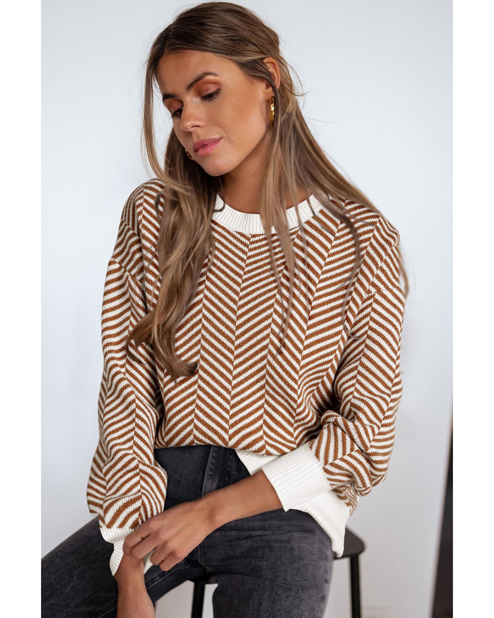 Coffee Contrast Edge Crew Neck Drop Shoulder Sweater – XL
