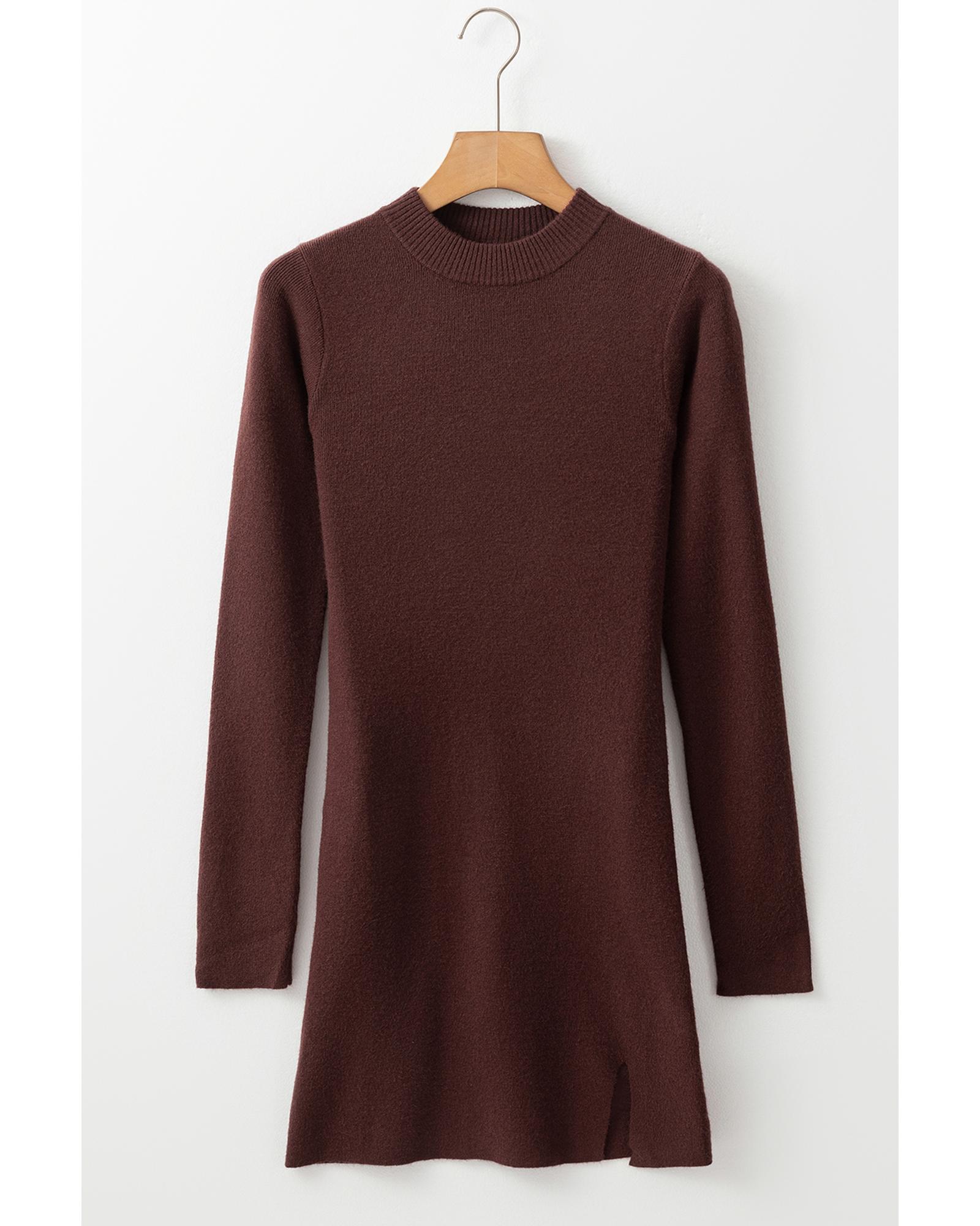 Coffee Slim Fit Mock Neck Side Slit Sweater Dress – L