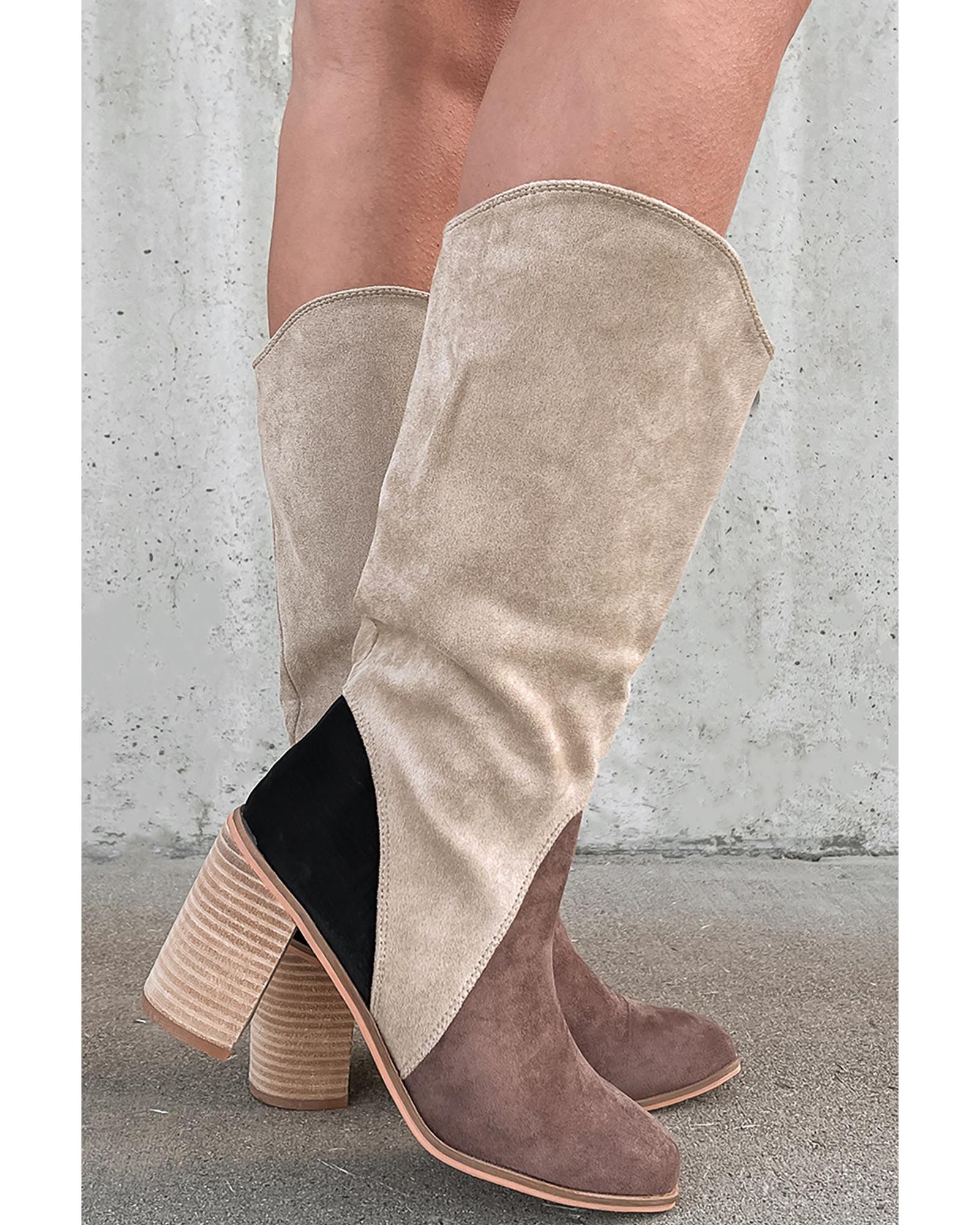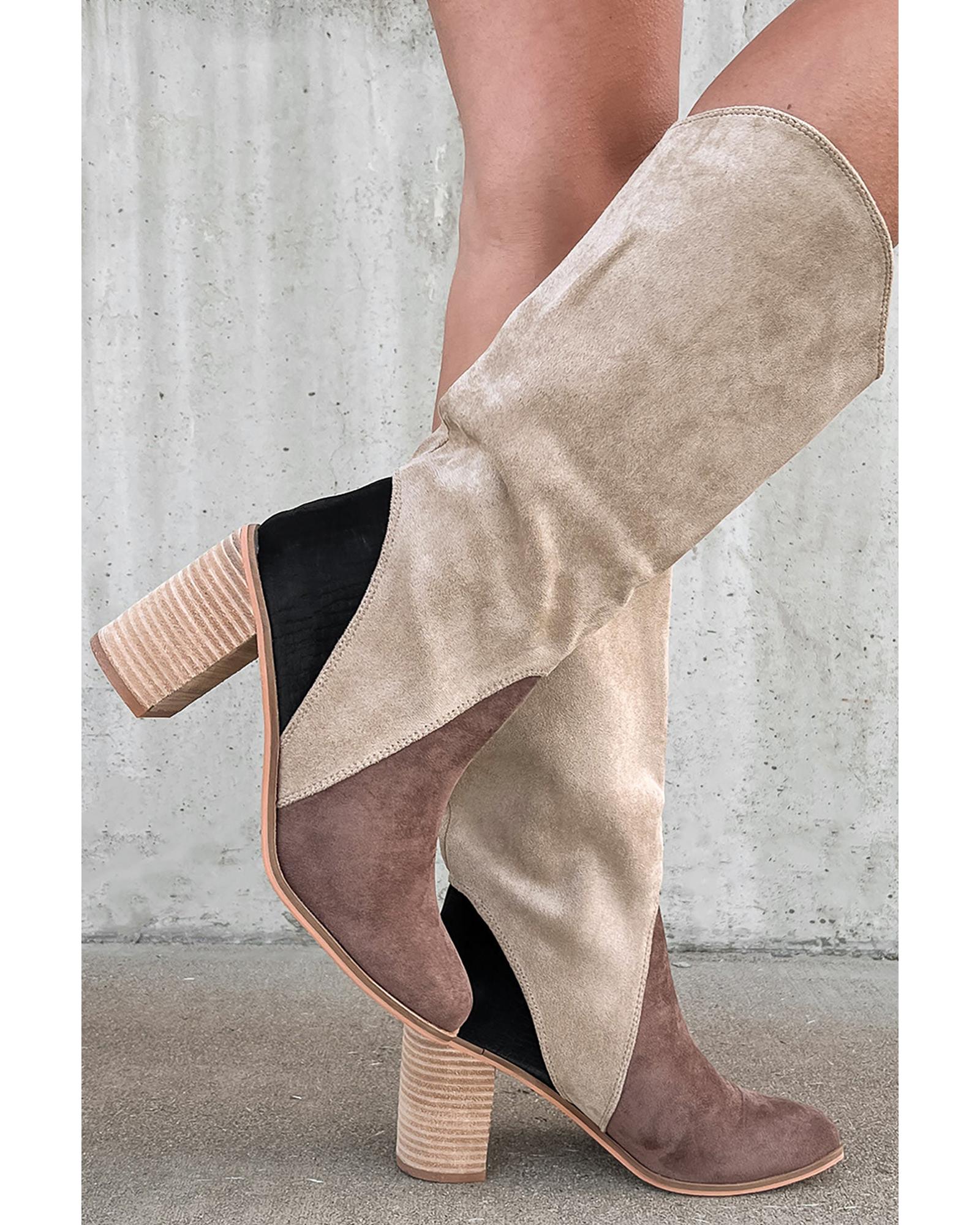 Coffee Suede Calf Length Chunky Heel Boots - 38 EU