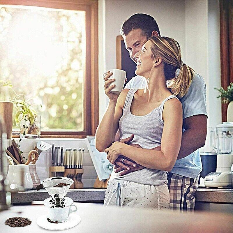 Coffee Tea Cup Drip Filter Mesh Holder Reusable Stainless Steel Pour Over Funnel