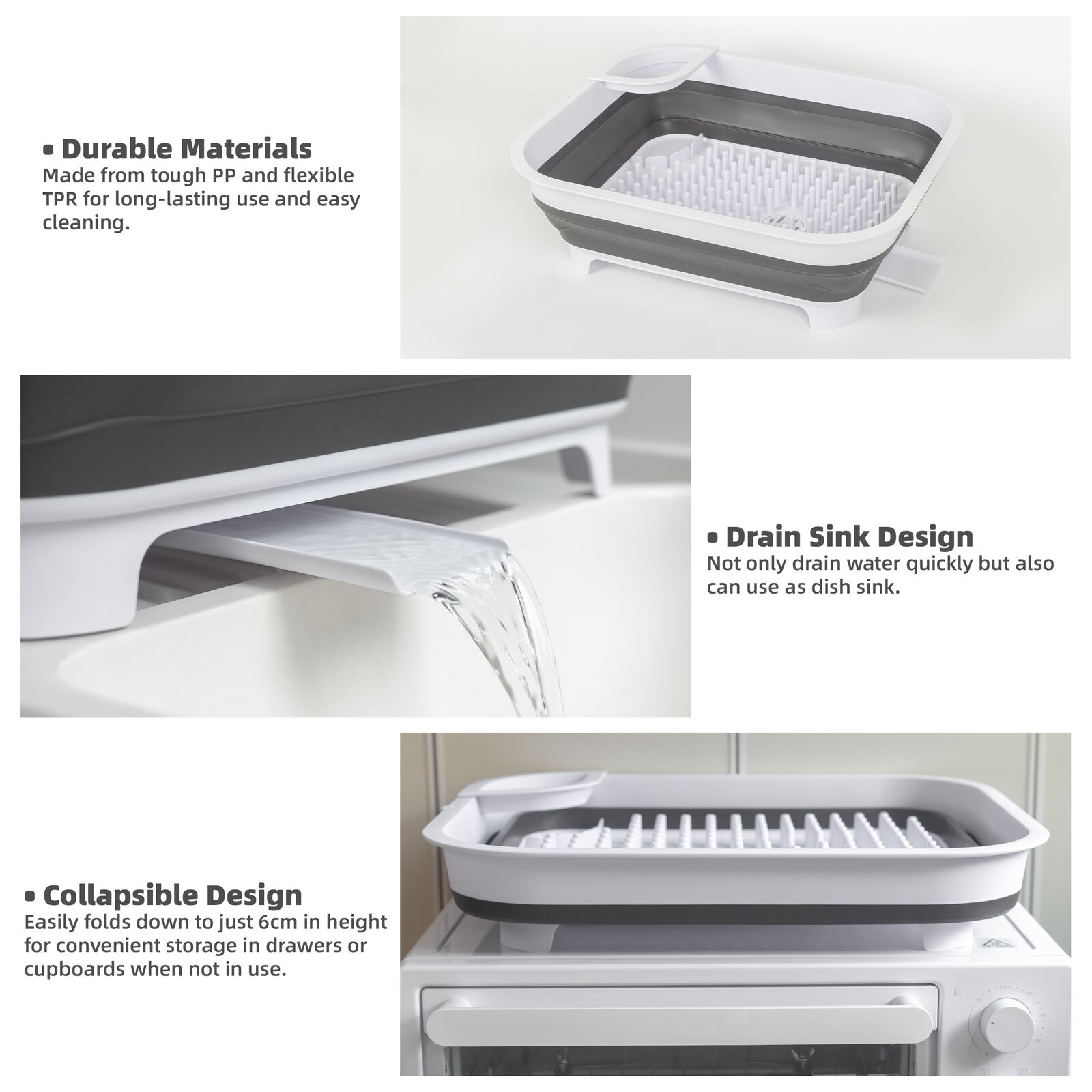 Collapsible Dish Rack with Utensil Section Space-Saving Drying Rack for Compact Kitchens & Camping