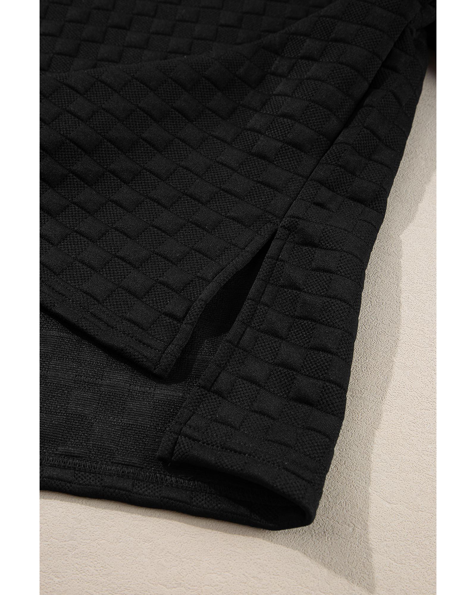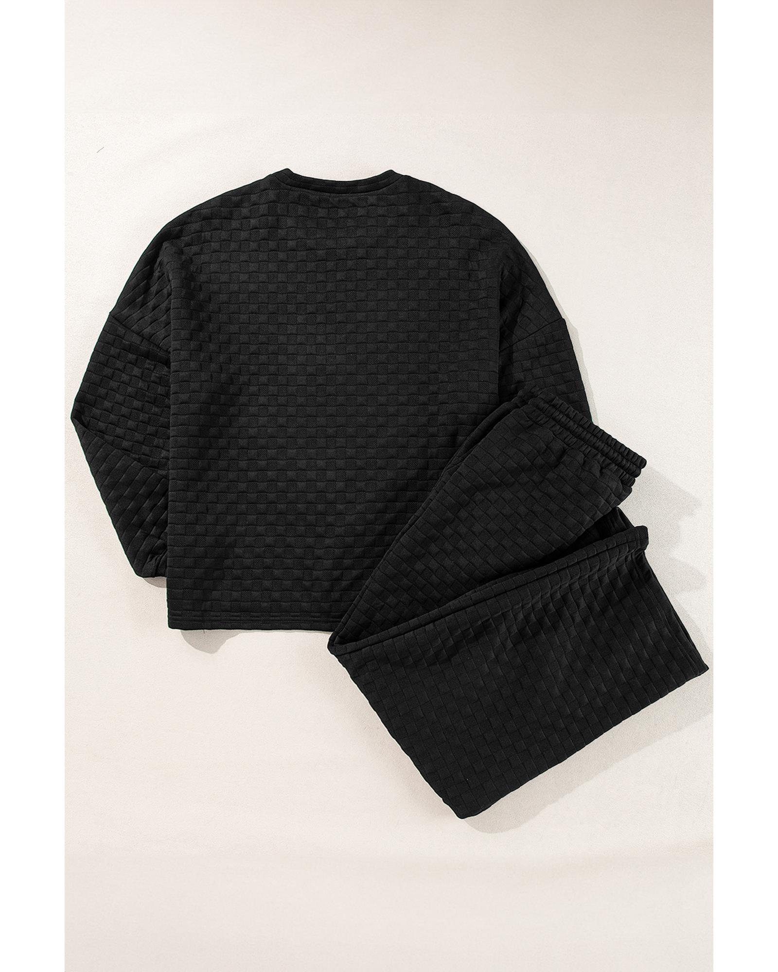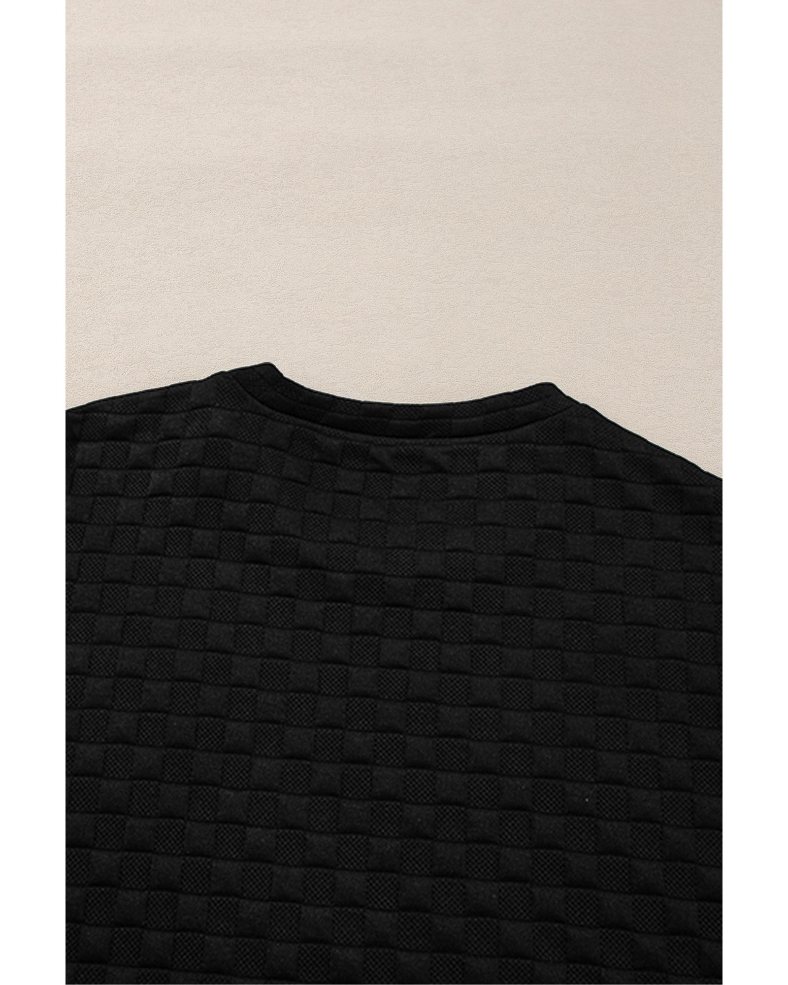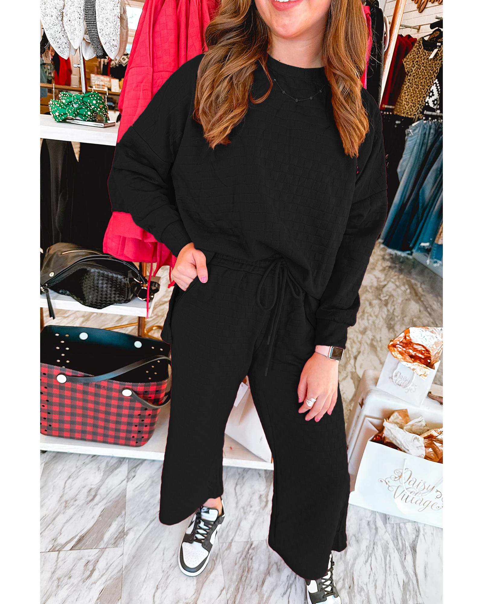 Color black Checkered Textured Split Pullover Top and Pants Set – S