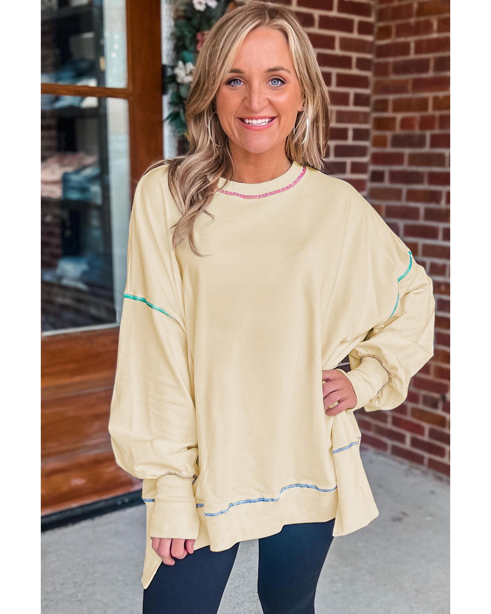 Beige FALL VIBES Graphic Drop Shoulder Sweatshirt - S