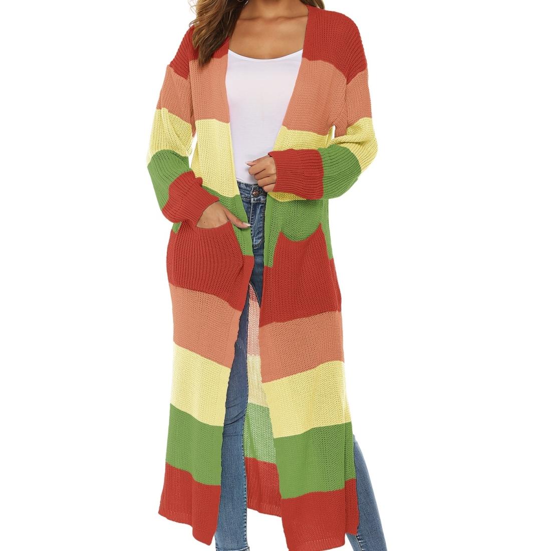 Contrast Striped Knit Sweater Blue Pink – L – Orange Green M