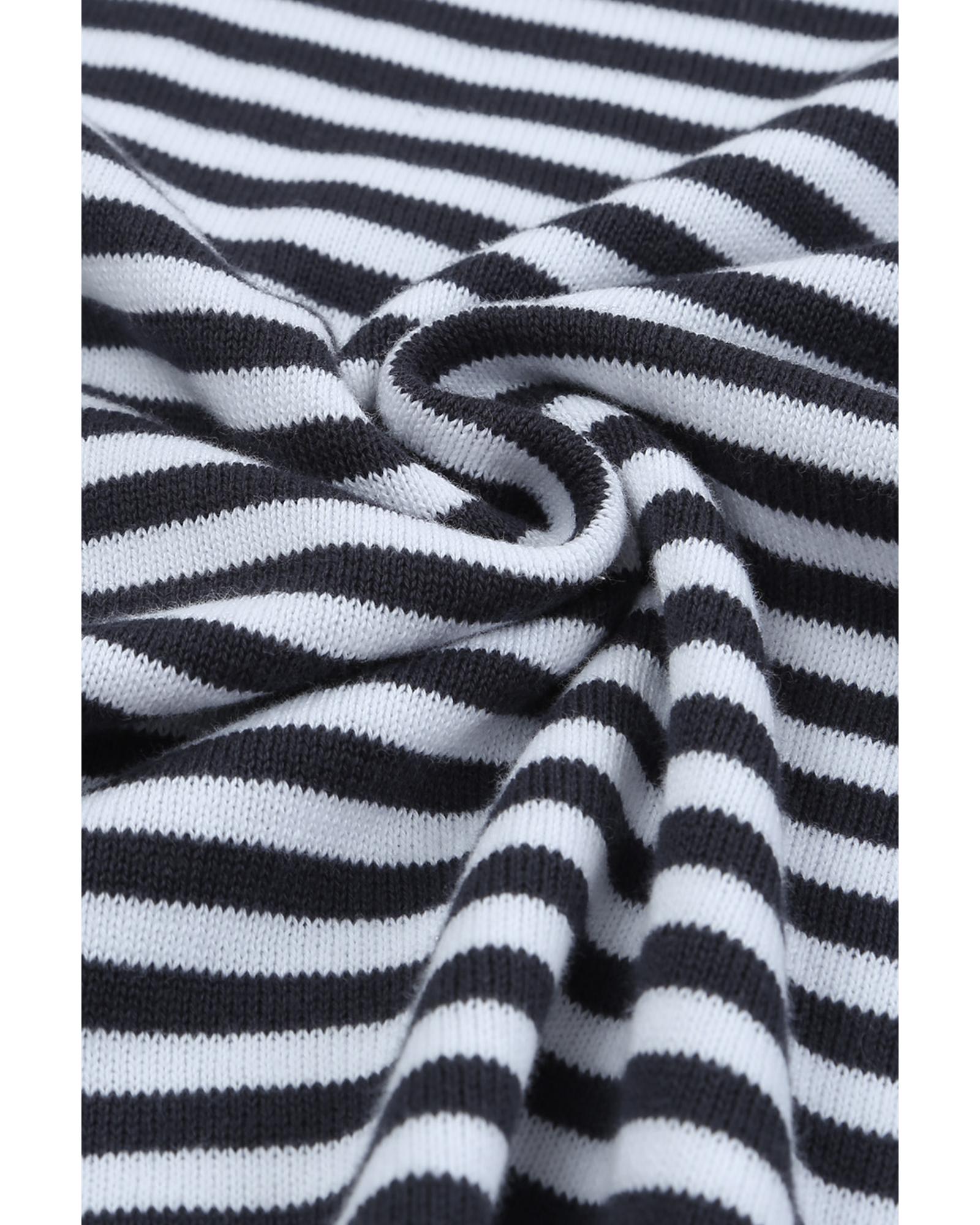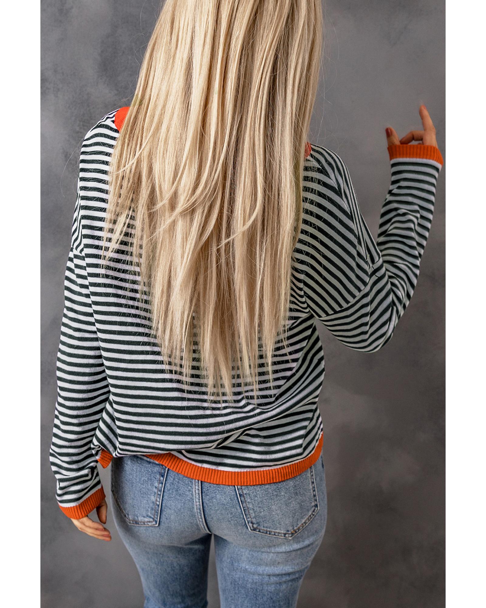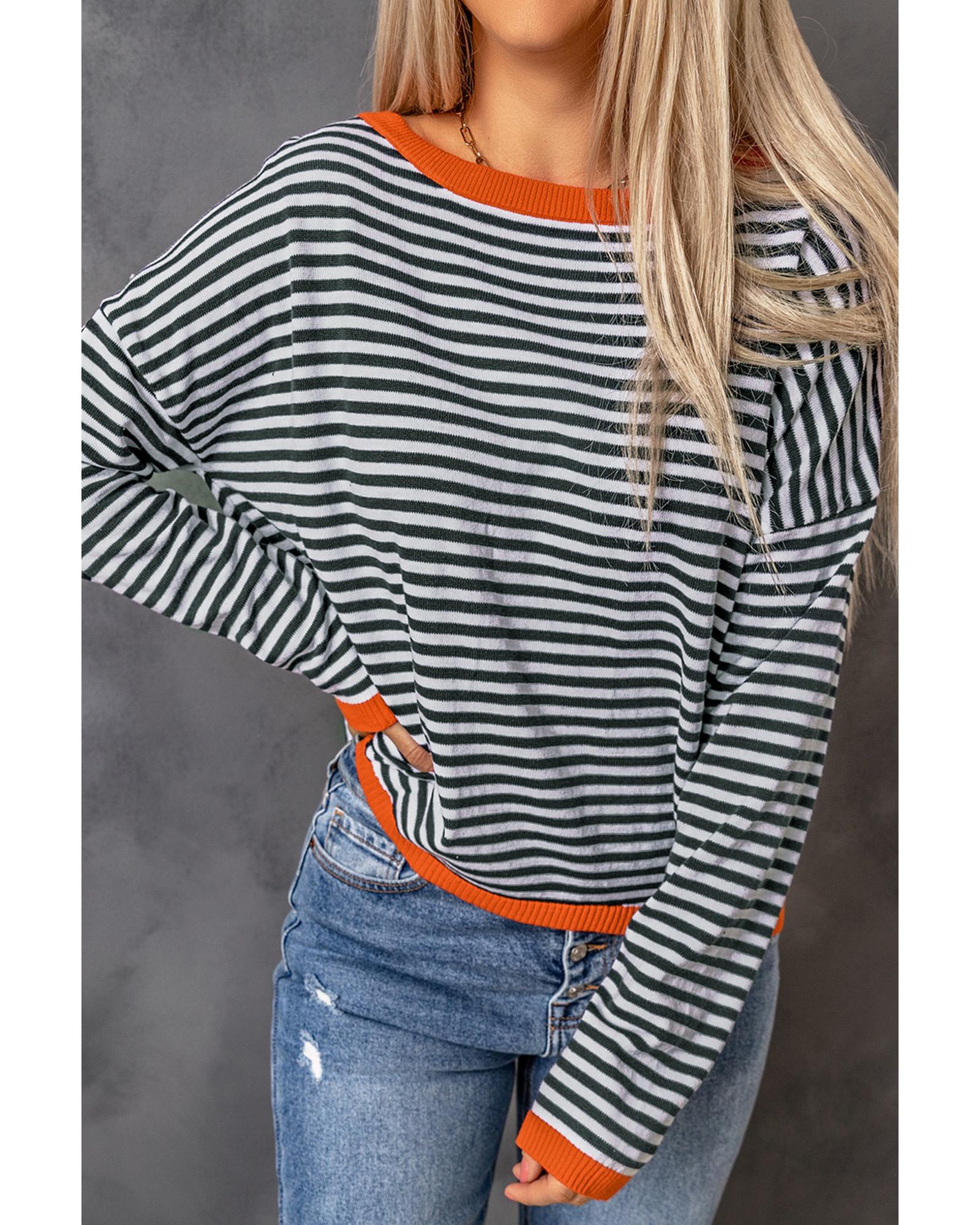 Contrast Trimmed Striped Drop Shoulder Sweater – M